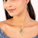 CZ Rose Gold Plated Necklace Set with Green Stones