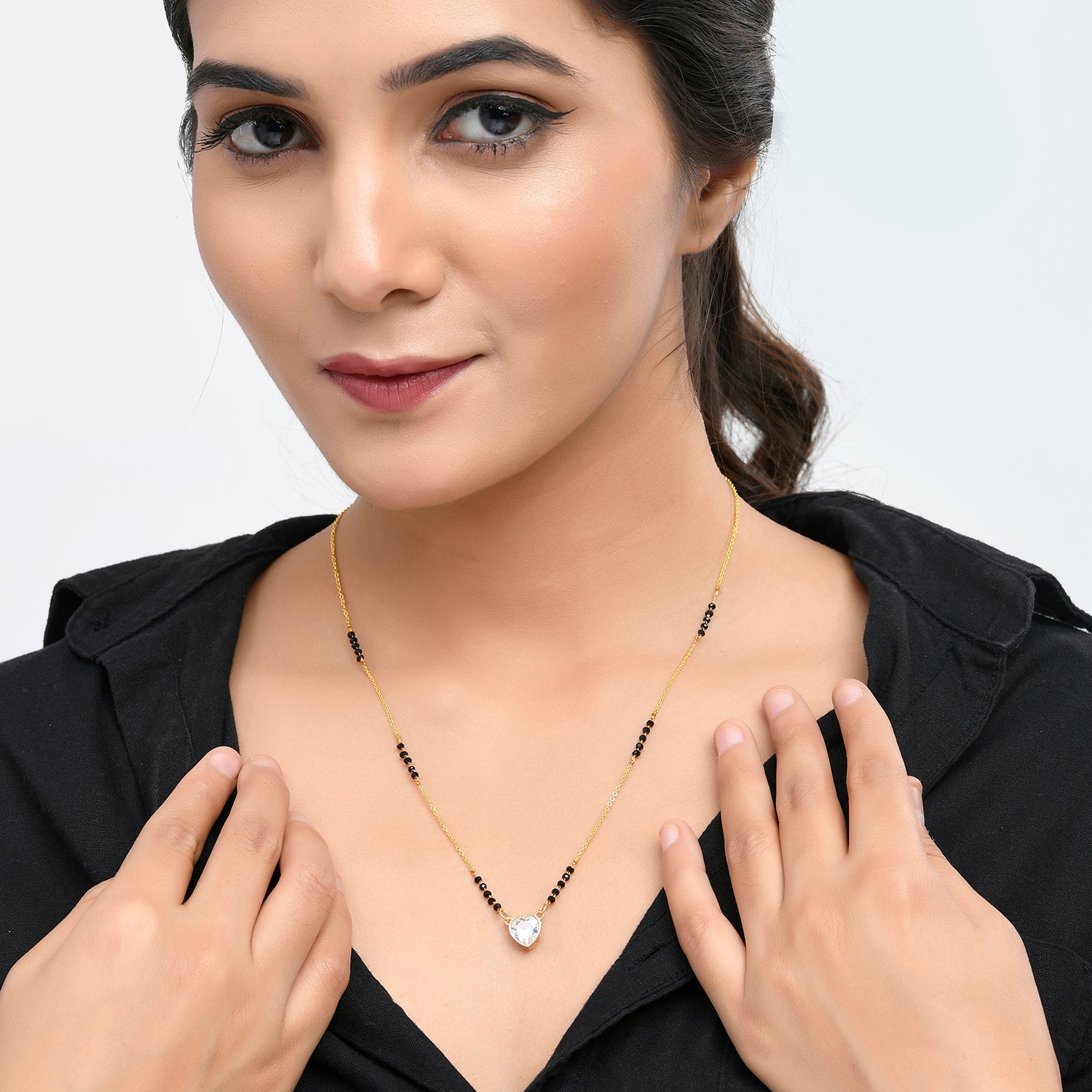 Sparkling Elegance Beaded Heart Zirconia Gems Mangalsutra