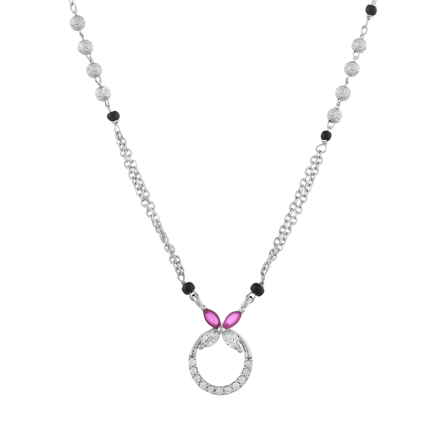 Beaded silver plated traditional mangalsutra with CZ gems. Made from brass and perfect for everyday wear.