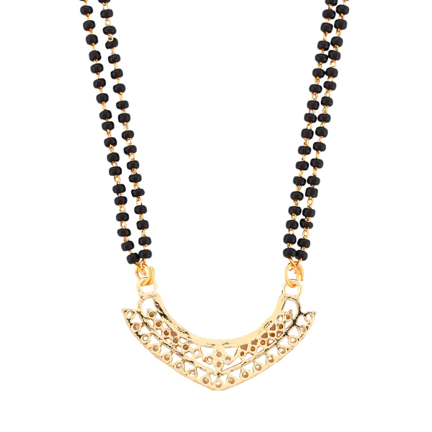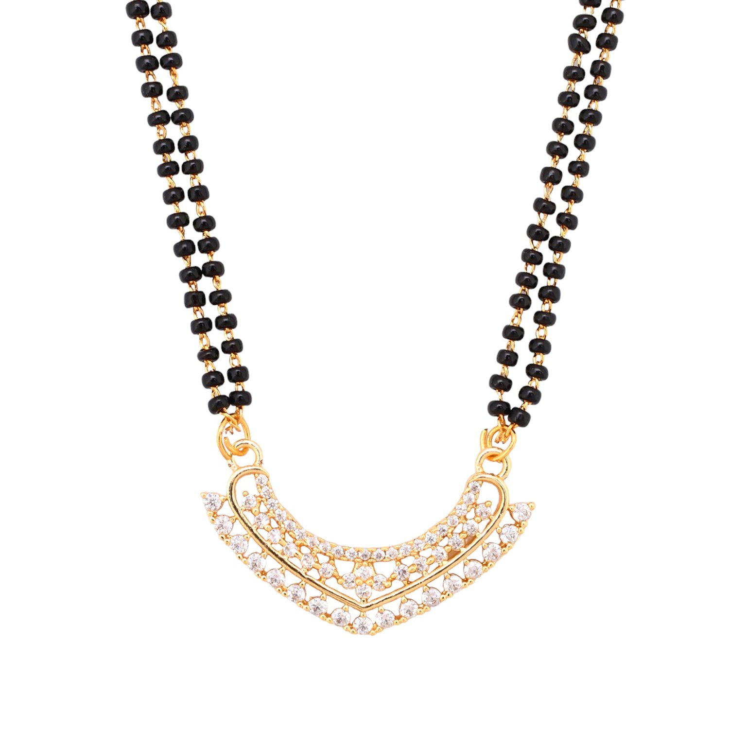 Beaded traditional gold plated mangalsutra, made from brass and embellished with CZ gems. A good match for formal attire.