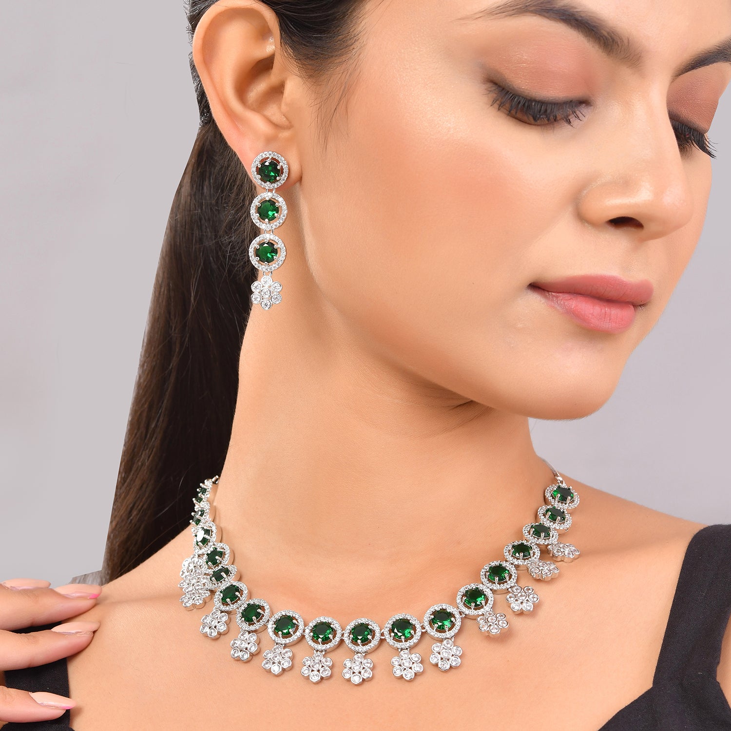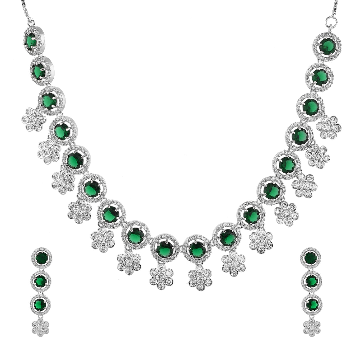 Sparkling Elegance Celestial Charm Emerald American Diamond Necklace Set