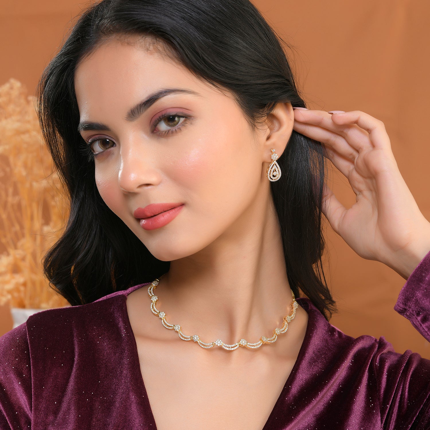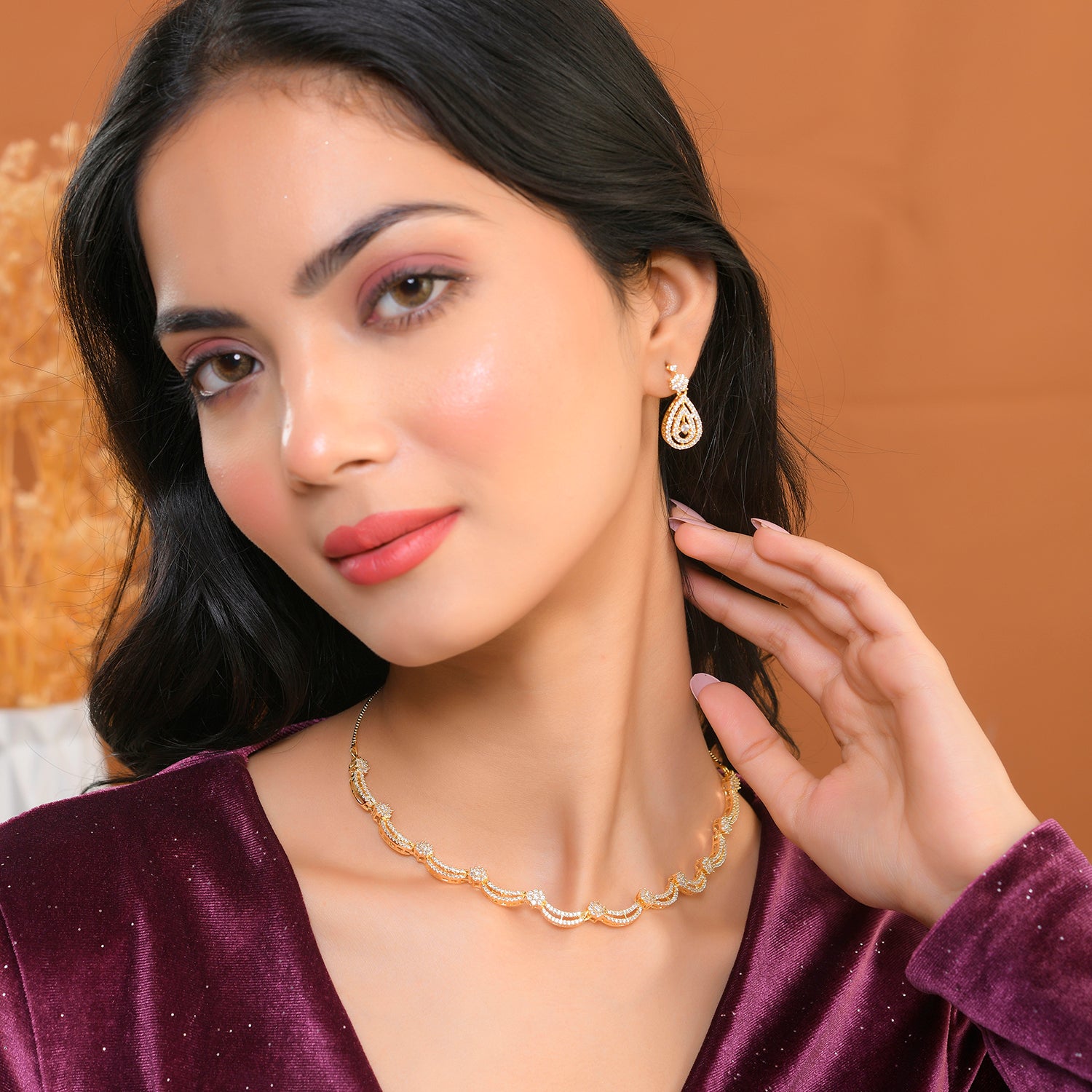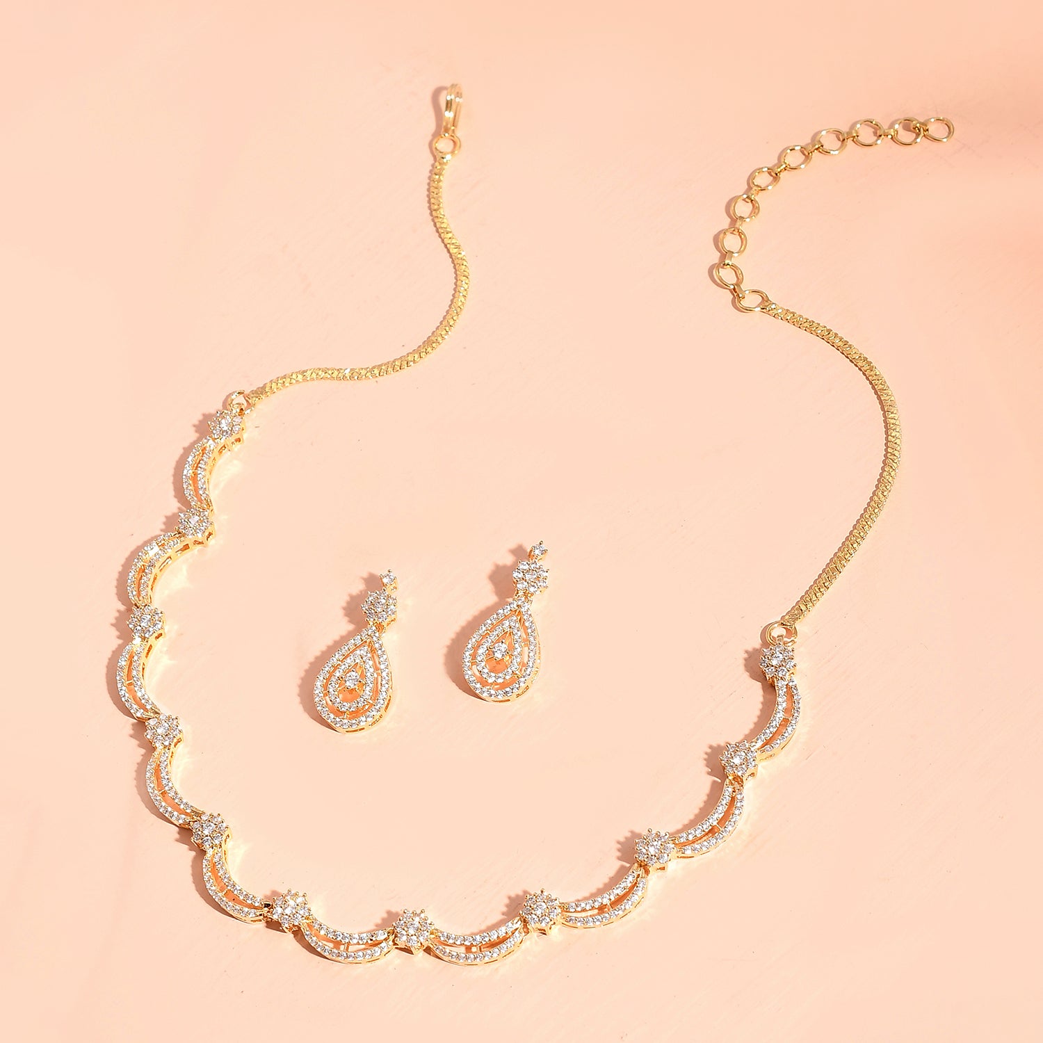 Sparkling Elegance Chic Gold-Plated American Diamond Necklace Set
