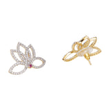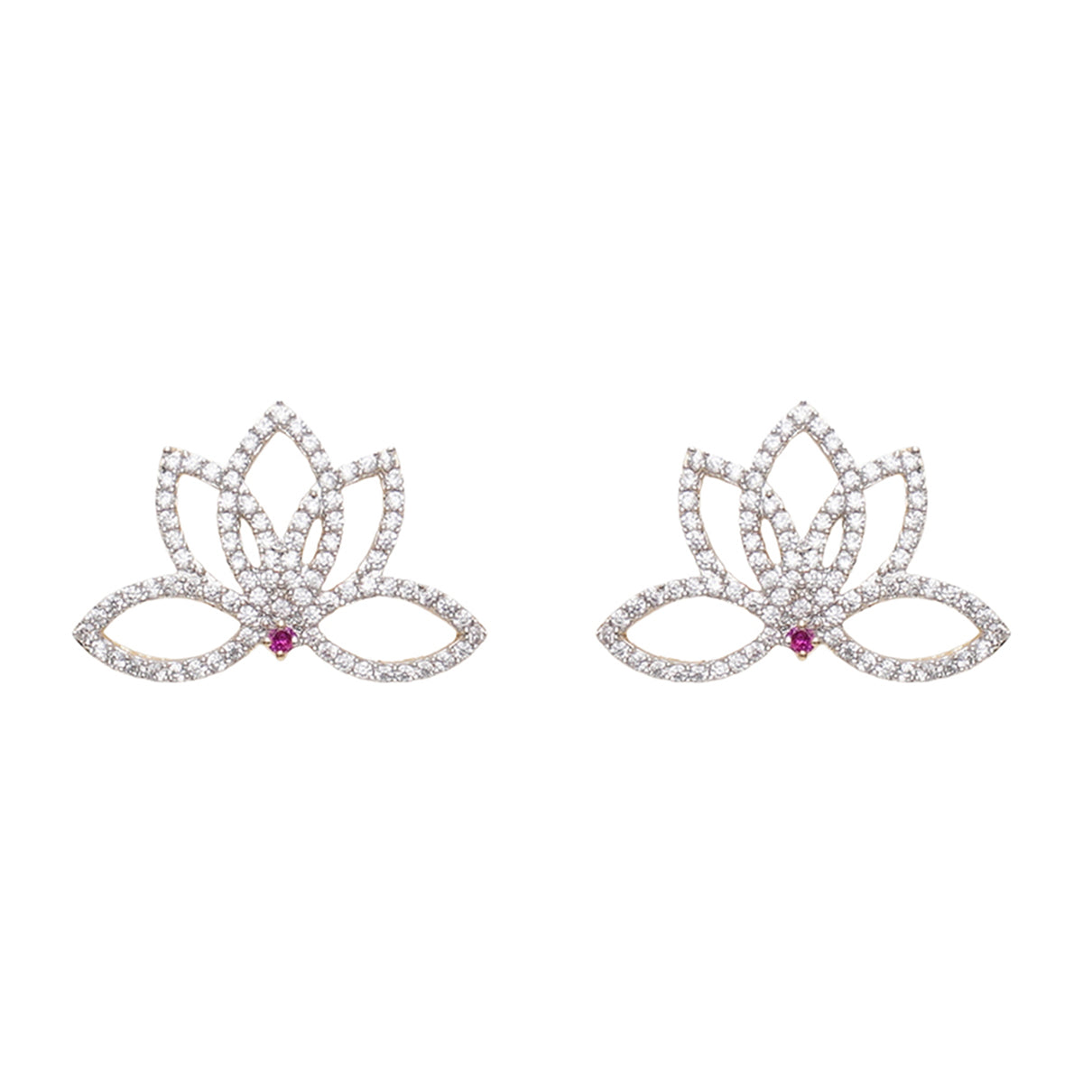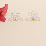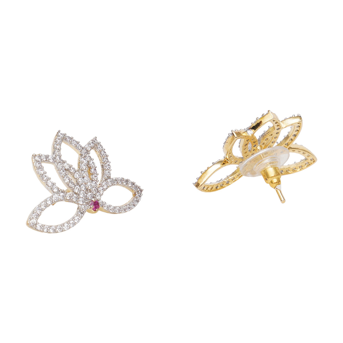 Floral motif stud earrings with CZ gemstones in a classic cluster setting. Gold plated and fashioned out of brass. A good match for casual and semi-formal outfits.