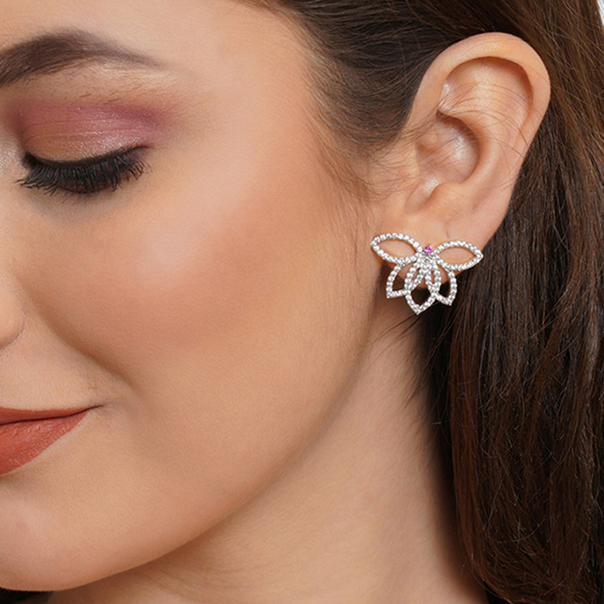 Sparkling Elegance Cluster Setting CZ Floral Earrings
