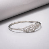 Sparkling Elegance Cluster Setting CZ Floral Motif Brass Rhodium Plated Bracelet