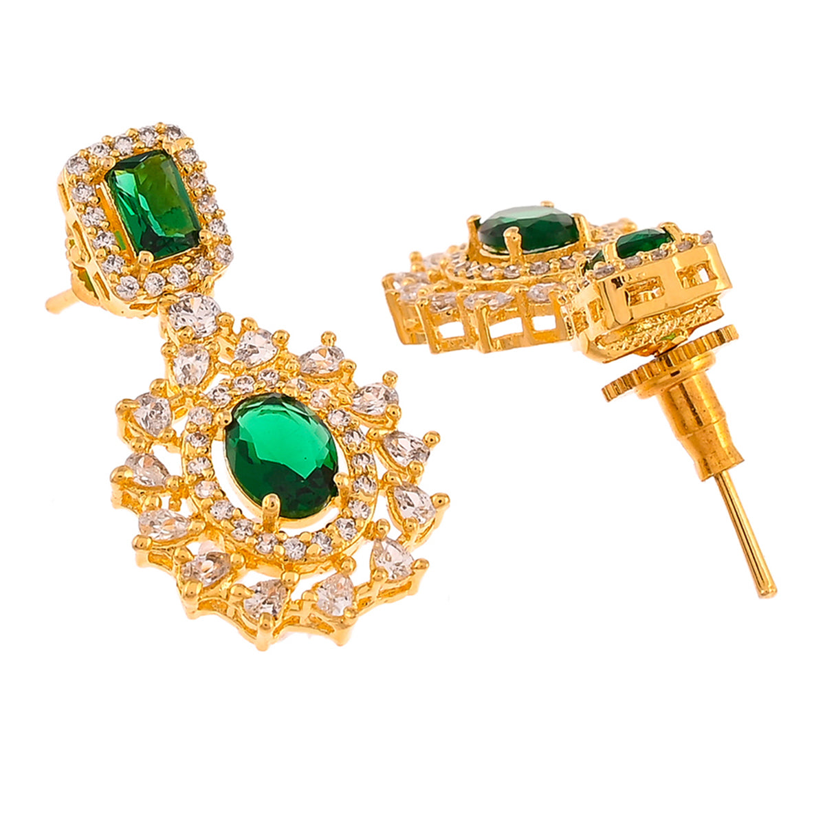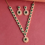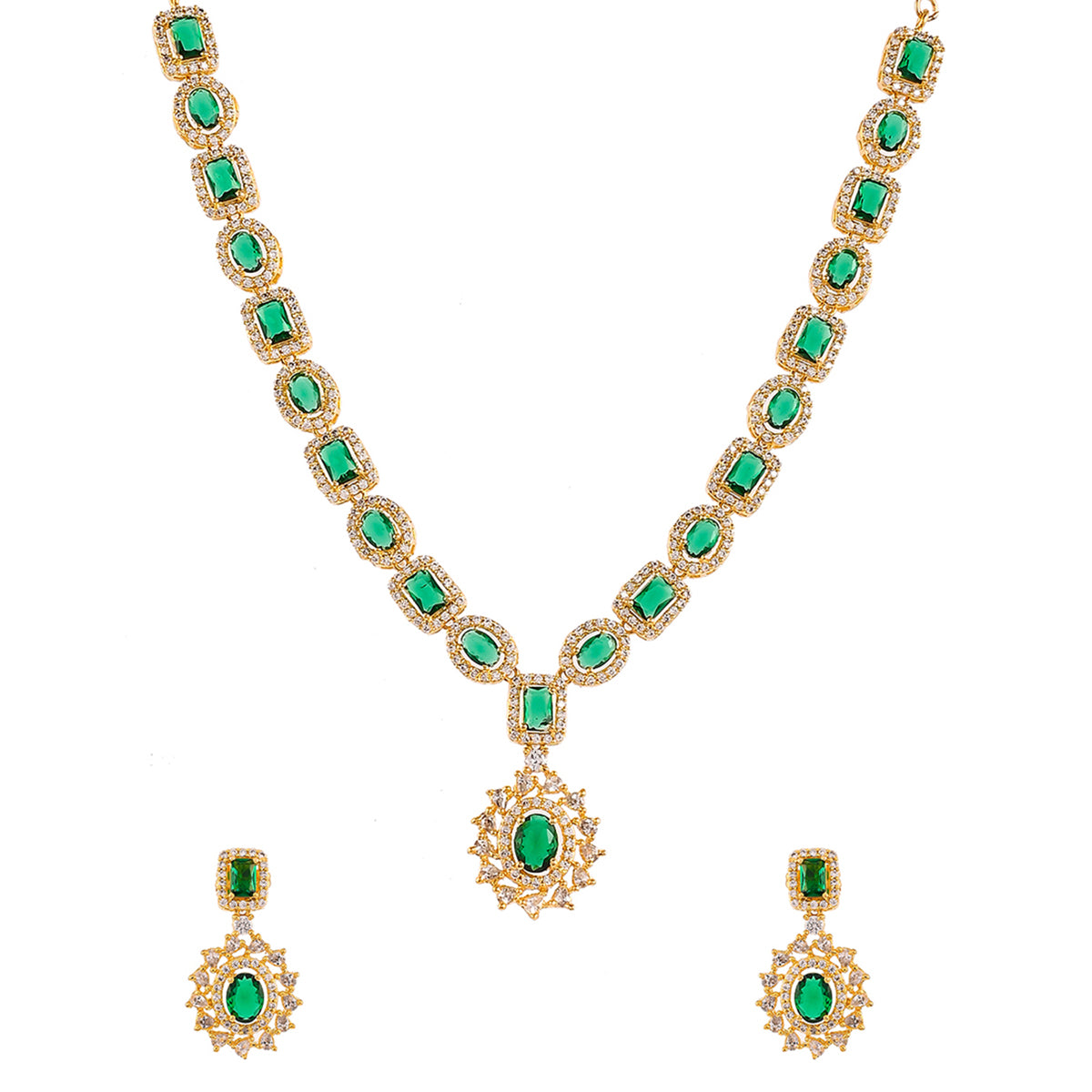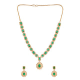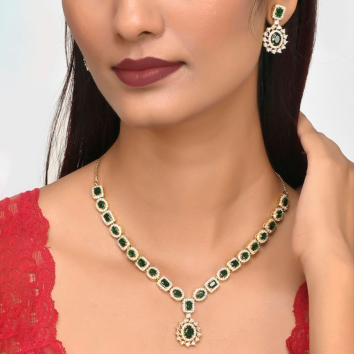 Round and oval cut zircons embellished jewellery set, fashioned out of brass. Gold plating adds to the opulence of this set, which will look splendid when paired with formal outfits.