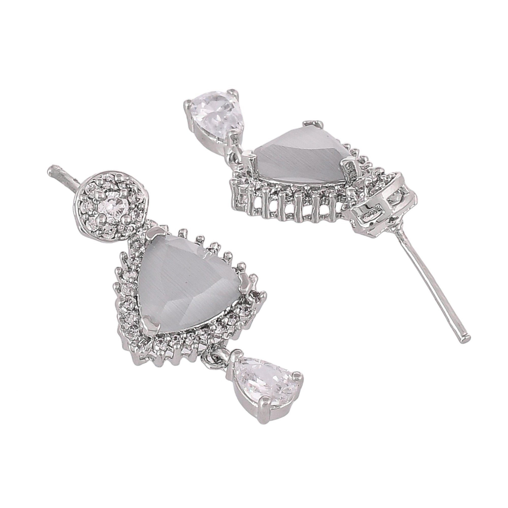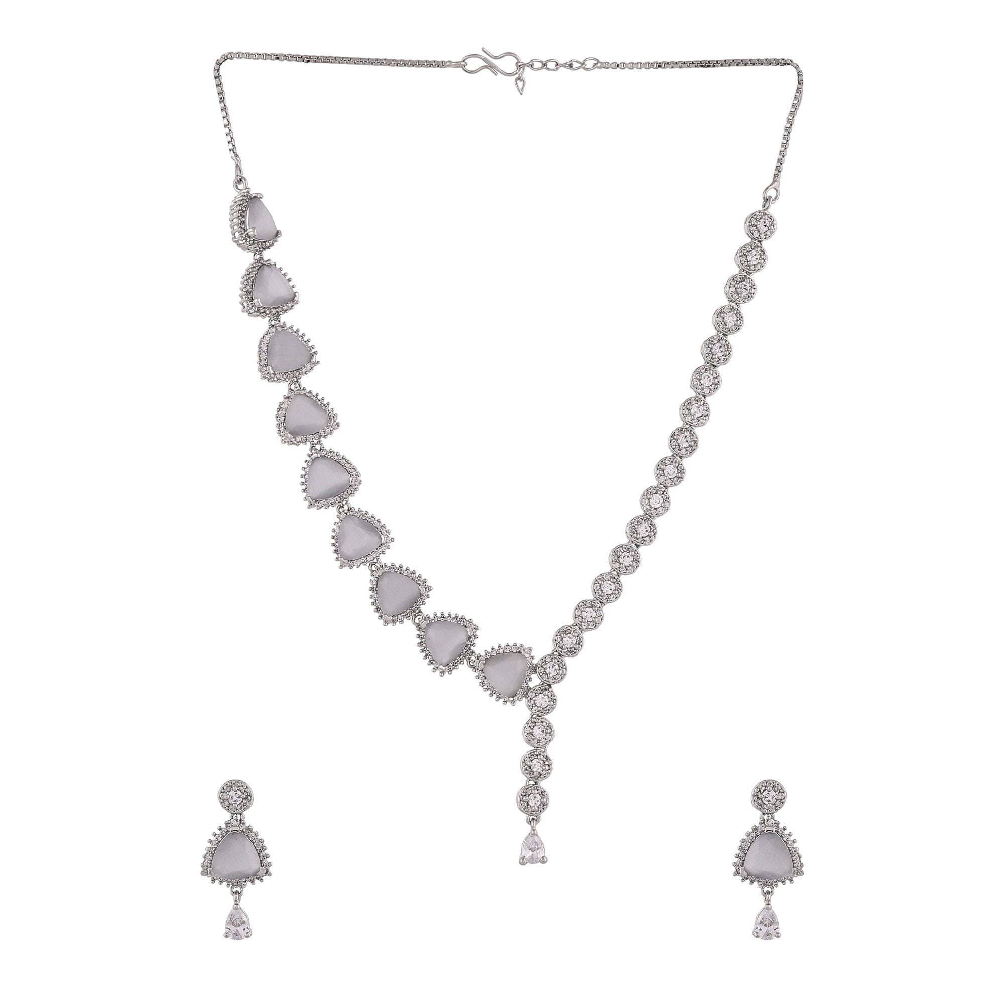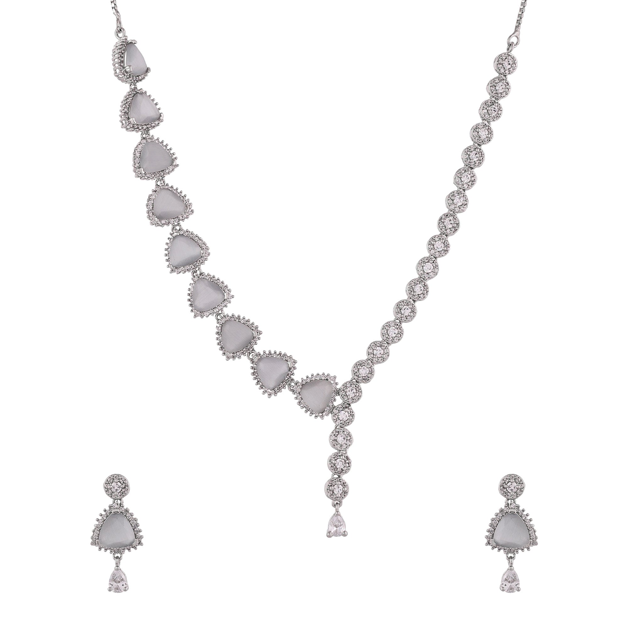 Coloured cubic zirconia gemstones adorned jewellery set in a contemporary design, made from brass and silver plated. Pair with any of your favorite outfits.
