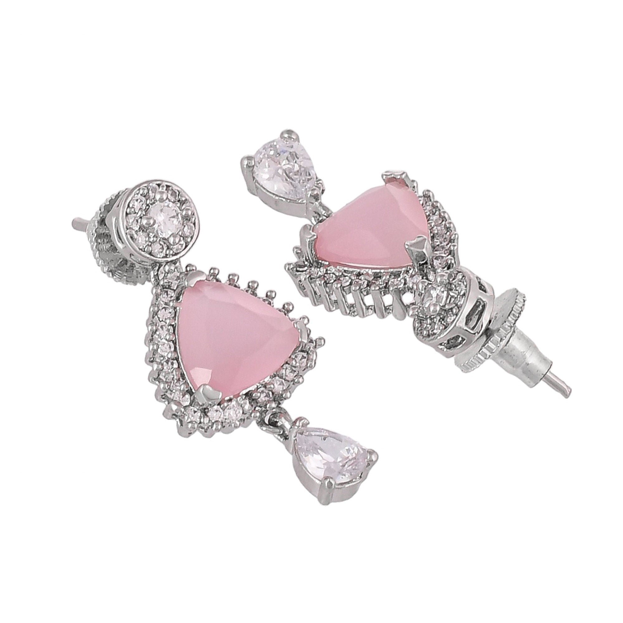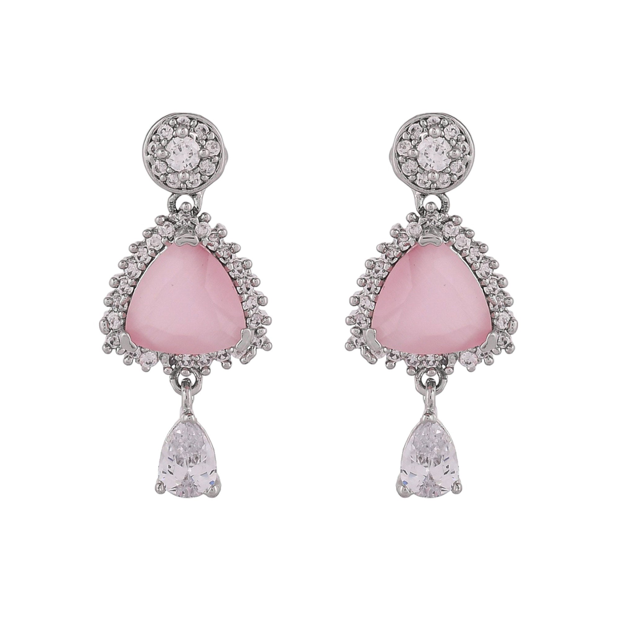 Cubic zirconia gemstones adorned jewellery set in a contemporary design, made from brass and silver plated. Pair with any of your favorite outfits.