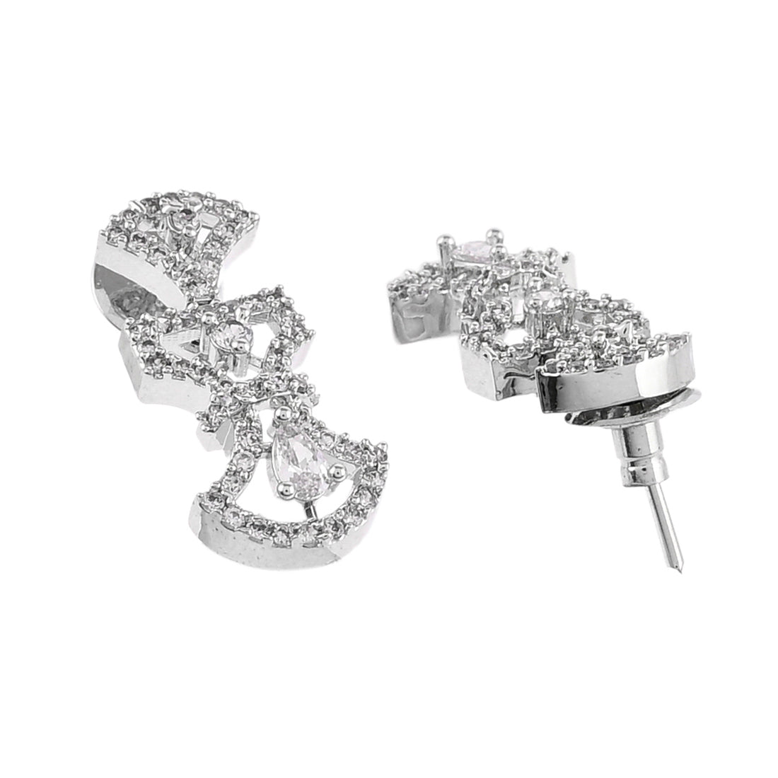 Fashioned into a classic cutwork design from high quality brass, the zirconia gems jewellery set has been given a lovely silver plating. Pair with a cocktail gown.