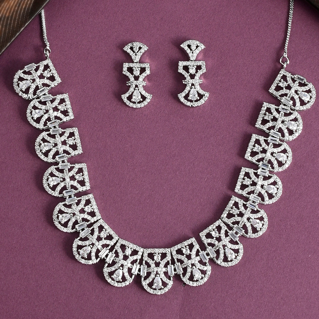 Sparkling Elegance Cutwork Design Zircons Jewellery Set