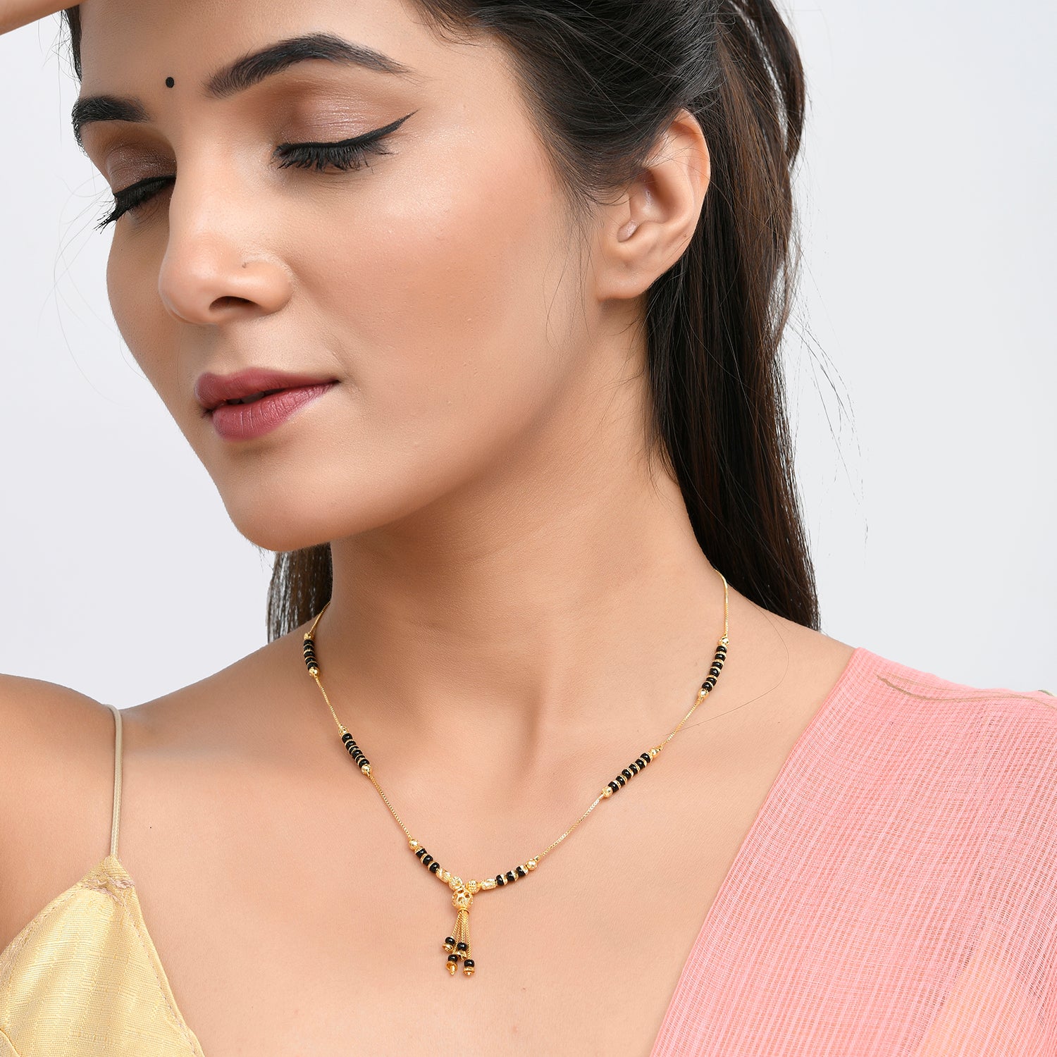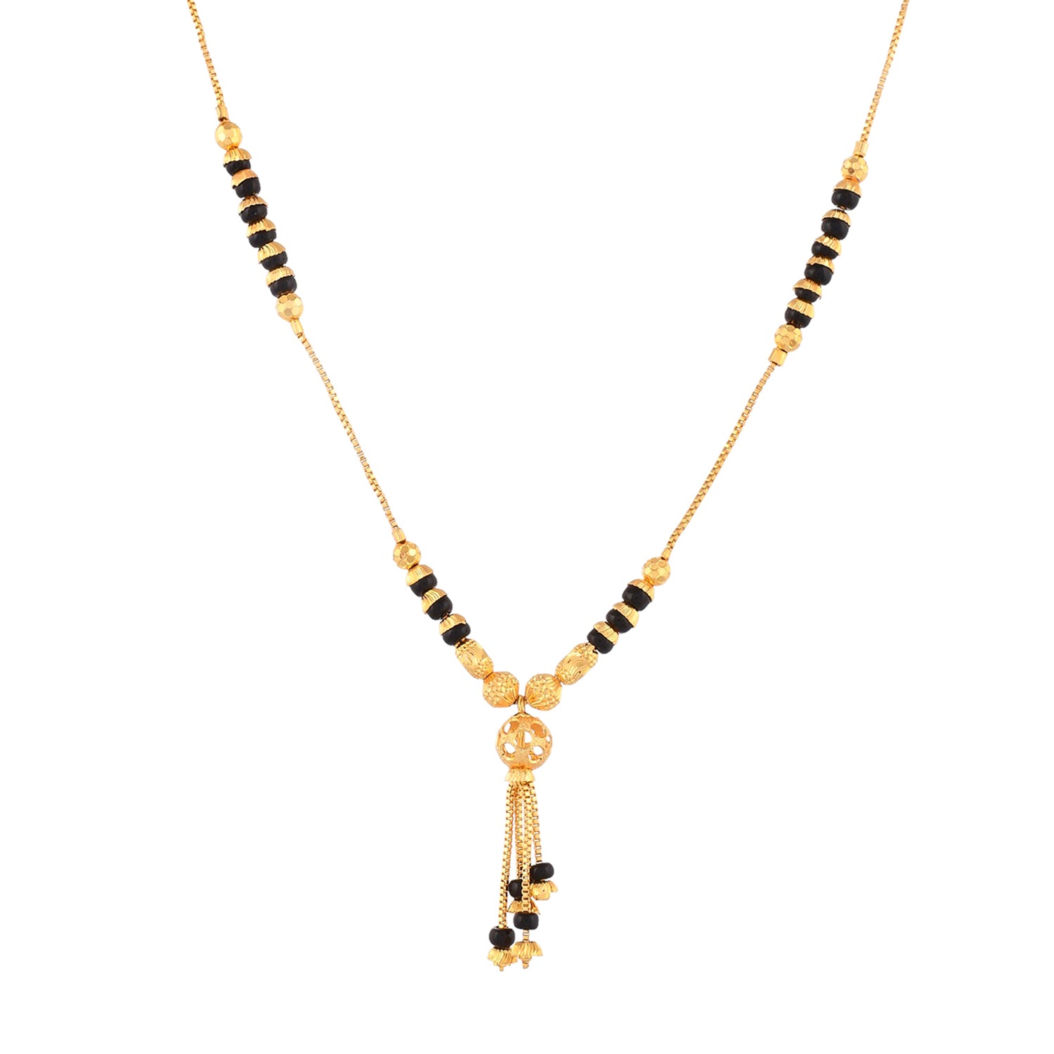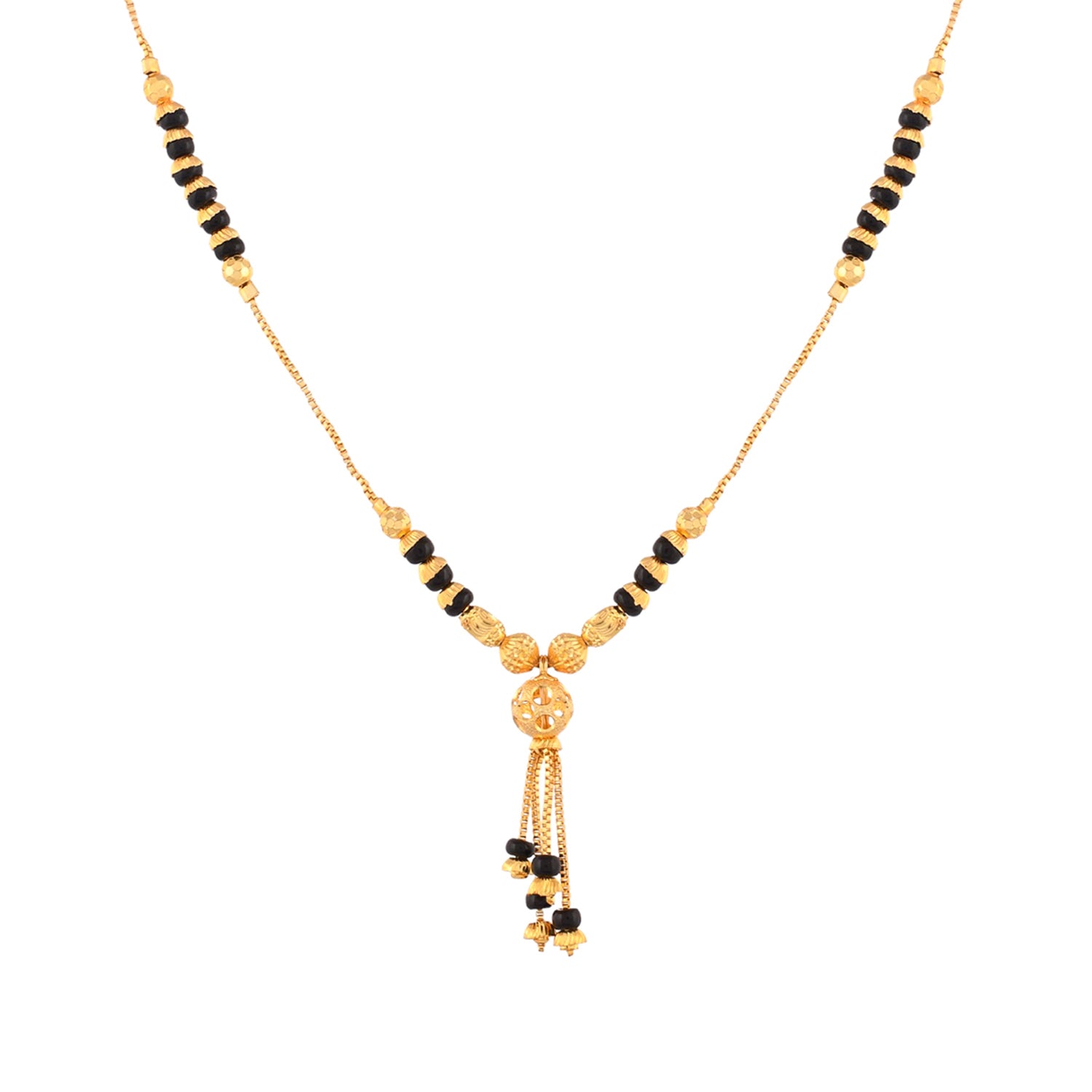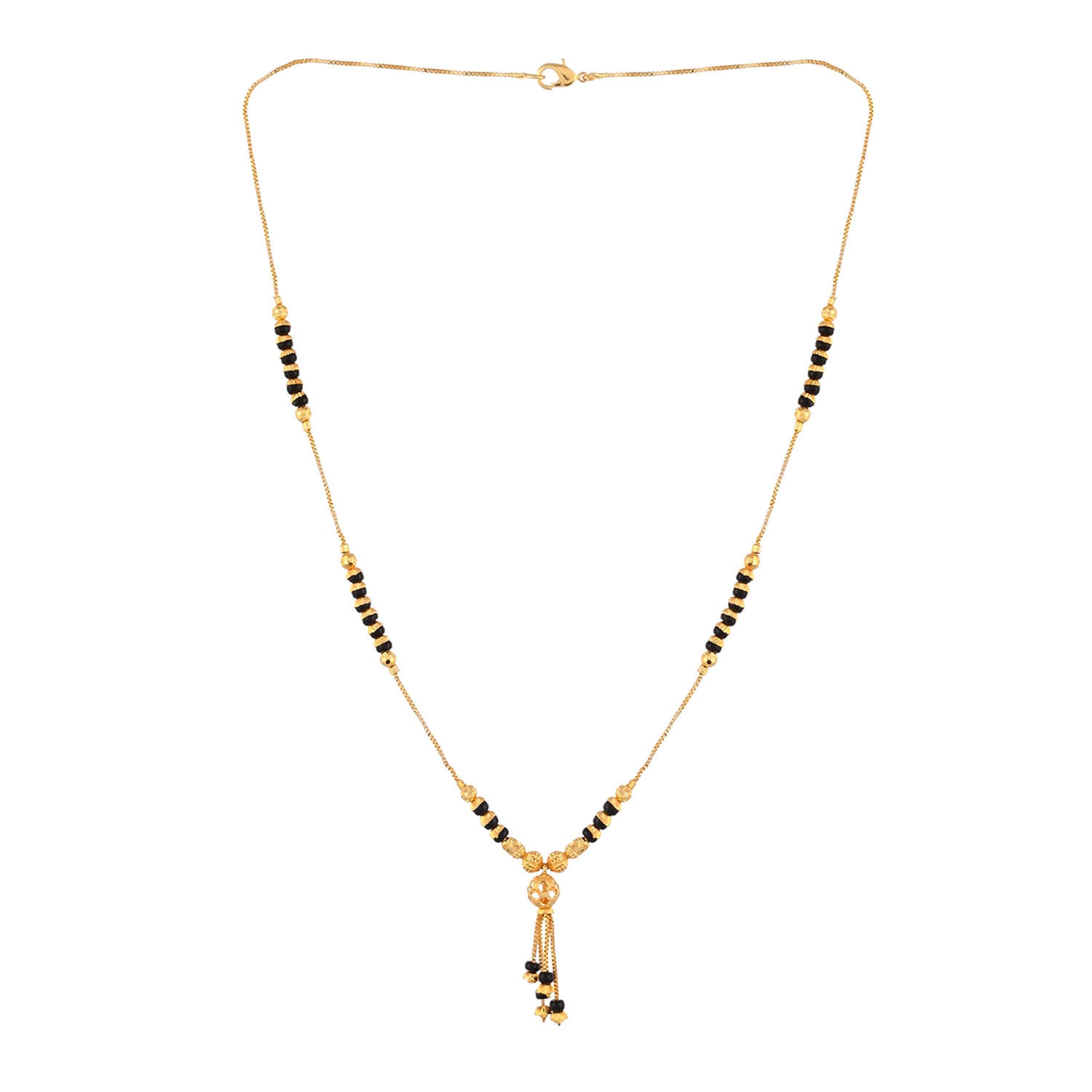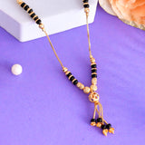Black beads traditional design mangalsutra with CZ gemstones. Made from brass and gold plated. Versatile and lightweight.