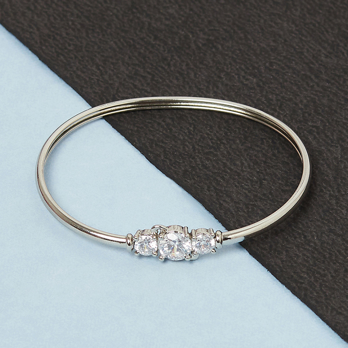 Adorn your wrist with this elegant brass bracelet. Featuring silver plating with the embellishment of CZ stones. Team it with your black dress at a party for a classy look.