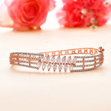 Embellished with cubic zirconia gemstones in various classic cuts, this brass bracelet has been given a lovely rose gold plating. Adjustable for maximum comfort, the bracelet can be paired with formal outfits of all types.