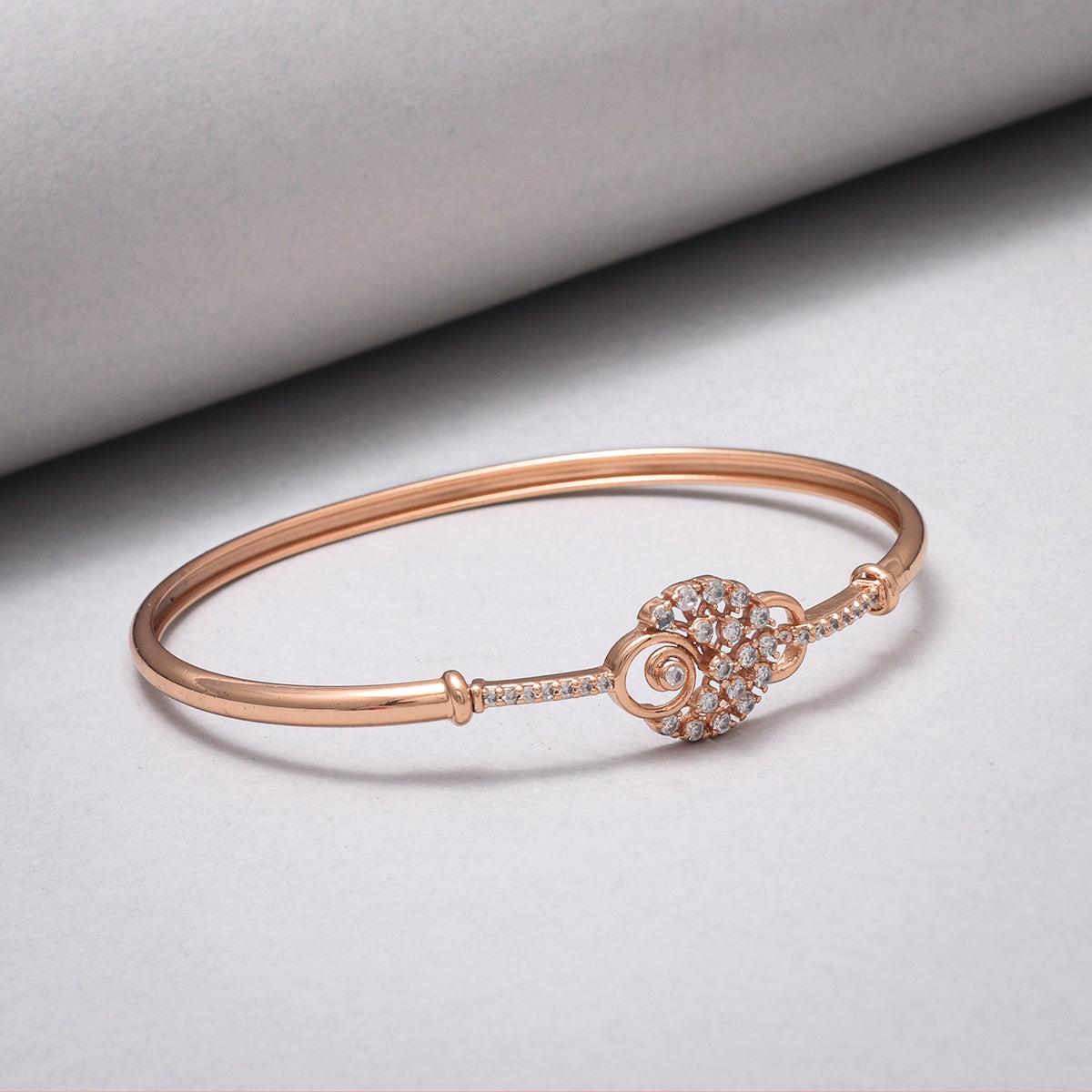 Fashioned from brass into a contemporary design, this rose gold plated bracelet promises to be a comfortable wear at all times. Embellished with cubic zirconia gemstones and versatile enough to be paired with just about everything.