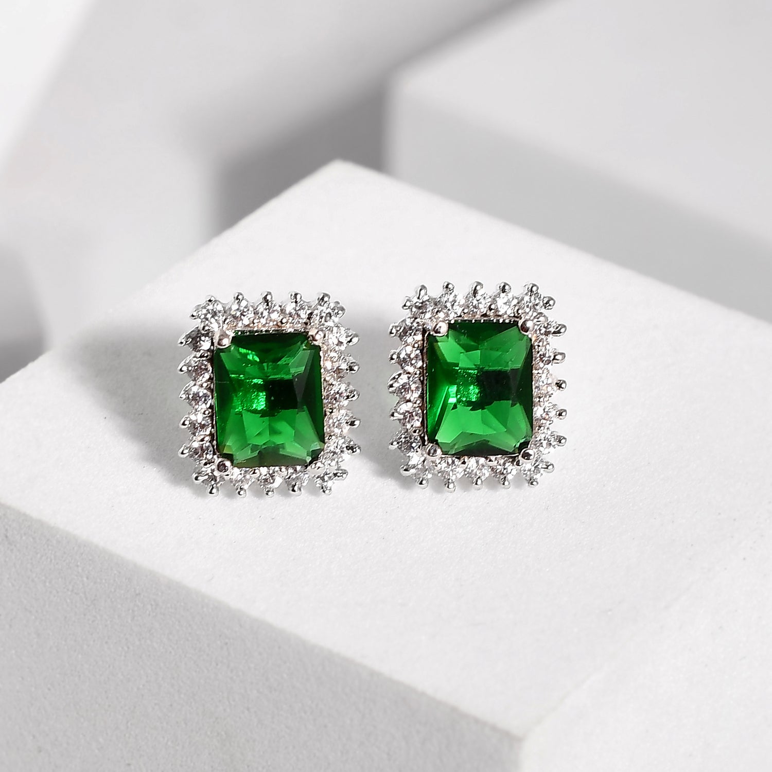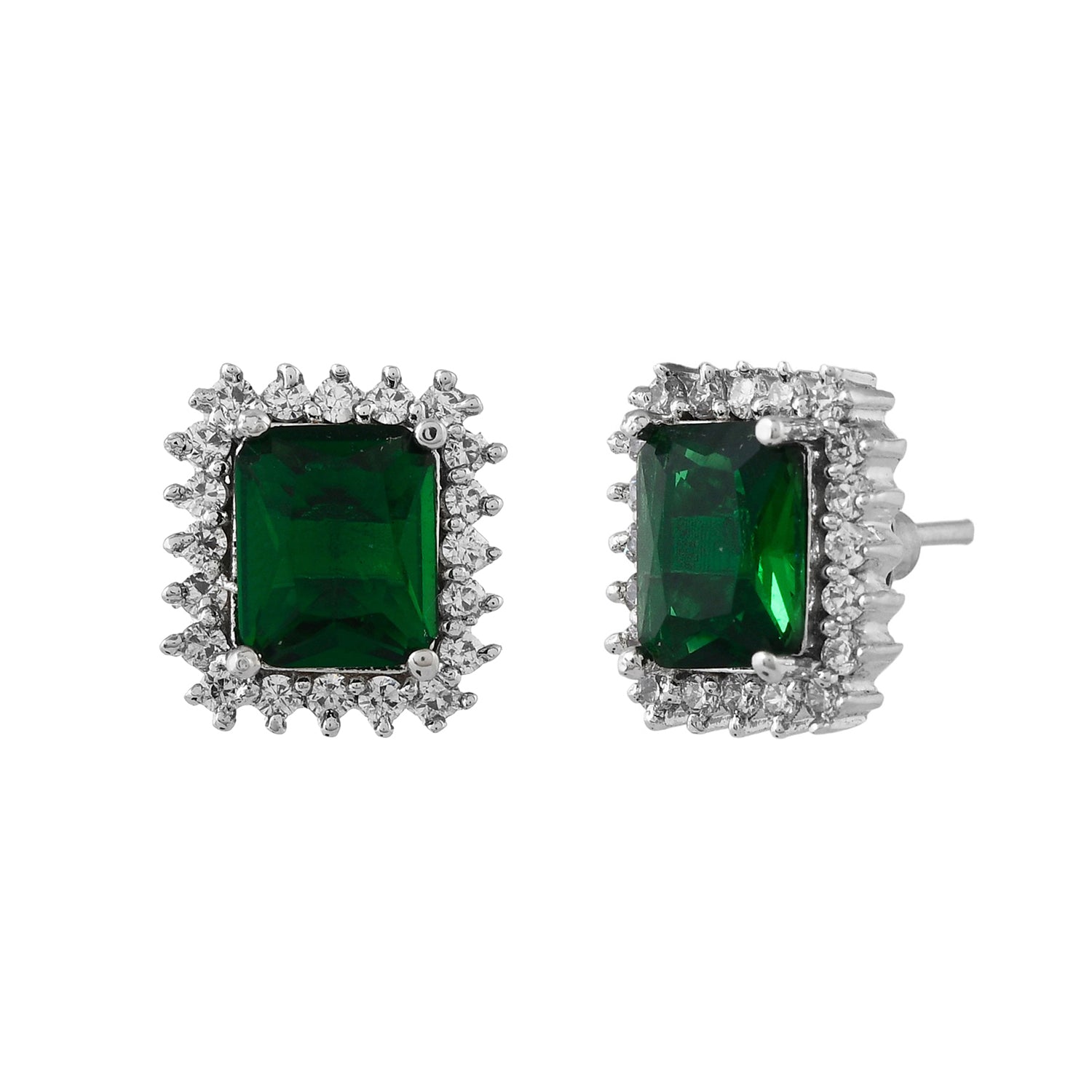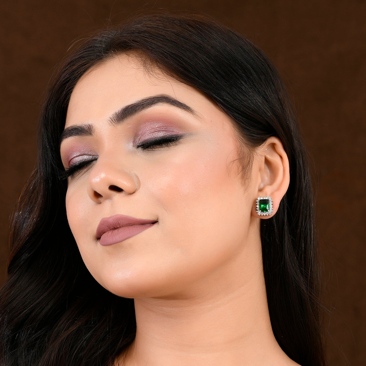Sparkling Elegance Emerald American Diamond Studs Earrings