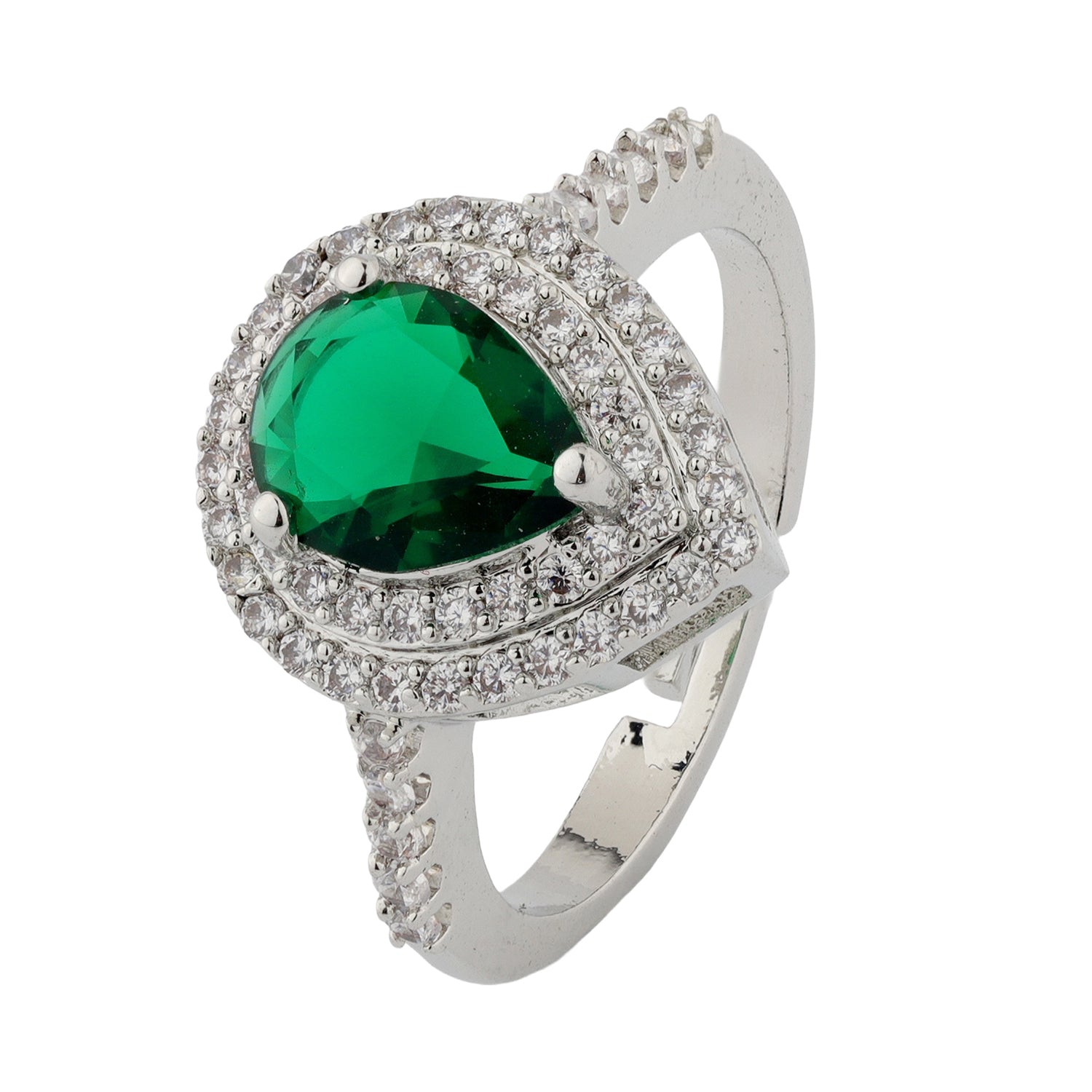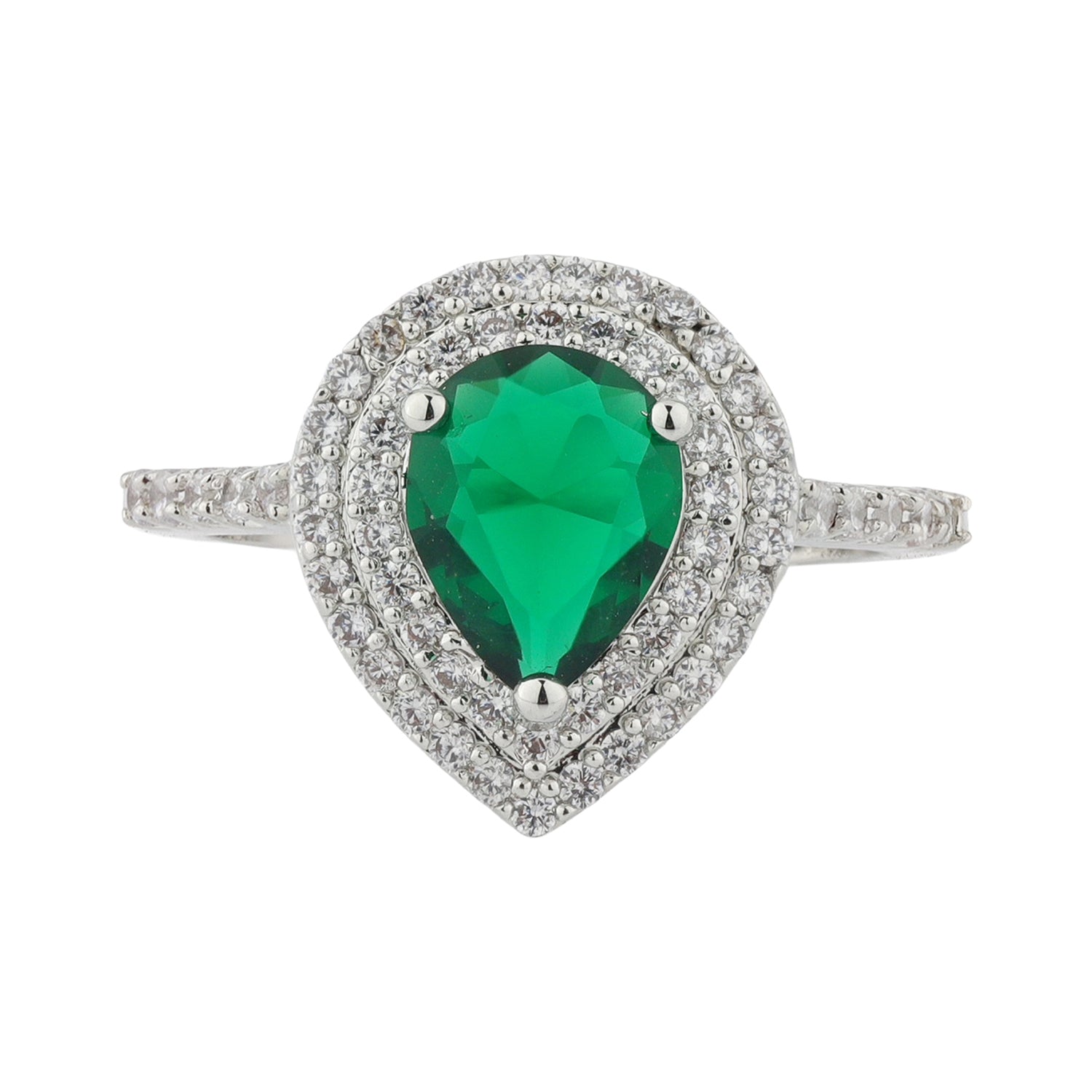 Step into timeless sophistication with the Sparkling Elegance Collection, featuring the exquisite Emerald Dew Statement Ring for women, a true embodiment of luxury and grace. Expertly crafted from premium brass and plated with high-quality white rhodium, this stunning piece radiates brilliance from every angle. The centerpiece boasts a rich emerald-green teardrop CZ stone, surrounded by two layers of sparkling white American diamonds that highlight its royal allure. Designed for the modern woman who loves to shine with elegance, this designer Ring blends classic charm with a contemporary twist. Whether it’s a Ring for wedding, a festive Ring, or a cocktail accessory, the Emerald Dew Statement Ring is the ultimate symbol of sophistication. It’s also an unforgettable gift for wife, gift for girlfriend, or gift for women who value timeless beauty and lasting quality.