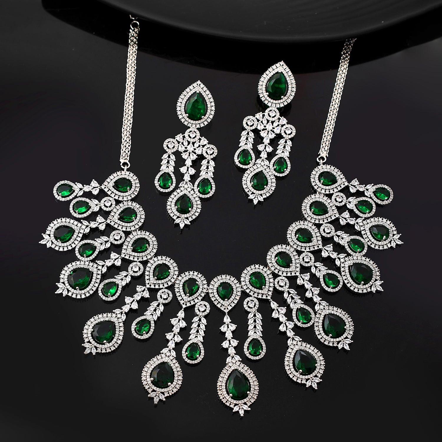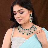 Sparkling Elegance Emerald Green Statement American Diamond Necklace Set