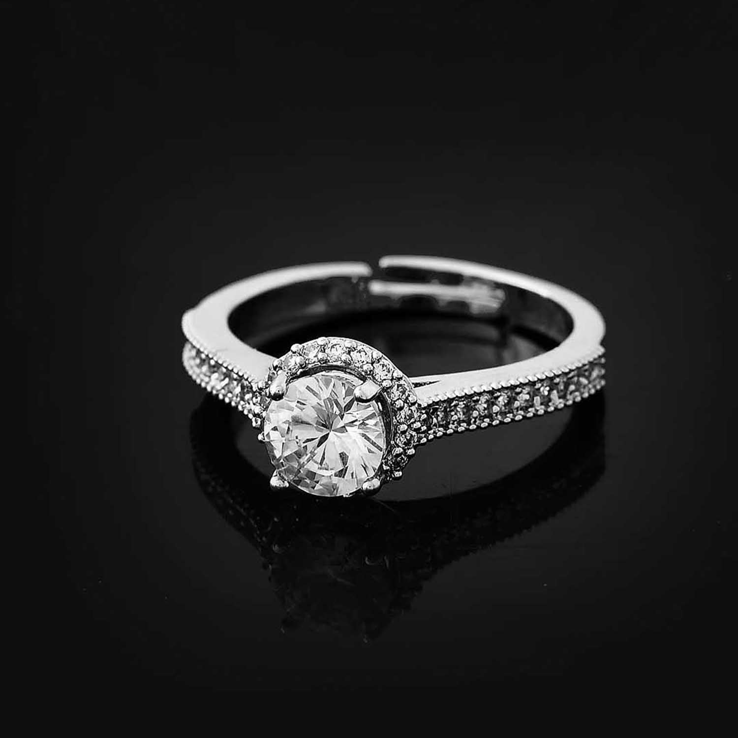 A mesmerizing blend of sophistication and radiance, the Sparkling Elegance Ethereal Glow Solitaire Ring is designed to captivate with its timeless charm. Crafted from premium brass and enhanced with a brilliant white rhodium plating, this solitaire ring features a luminous, round-cut centerpiece that glows with an ethereal brilliance, encircled by delicate embellishments that add an extra touch of refinement. The sleek band ensures comfort while maintaining its luxurious appeal, making it a perfect choice for both everyday elegance and special occasions. Whether styled with statement earrings for a bold look or paired with stud earrings for understated sophistication, this ring effortlessly transitions from office jewelry to vacation wear, festive celebrations, and romantic gifts. Ideal for Diwali, Eid, Rakshabandhan, Christmas, and Valentine’s Day, it’s a stunning token of love for your wife, girlfriend, sister, or mother. A masterpiece of modern grace and classic beauty, this ring is more than just an accessory—it’s an expression of confidence, style, and sentiment.
