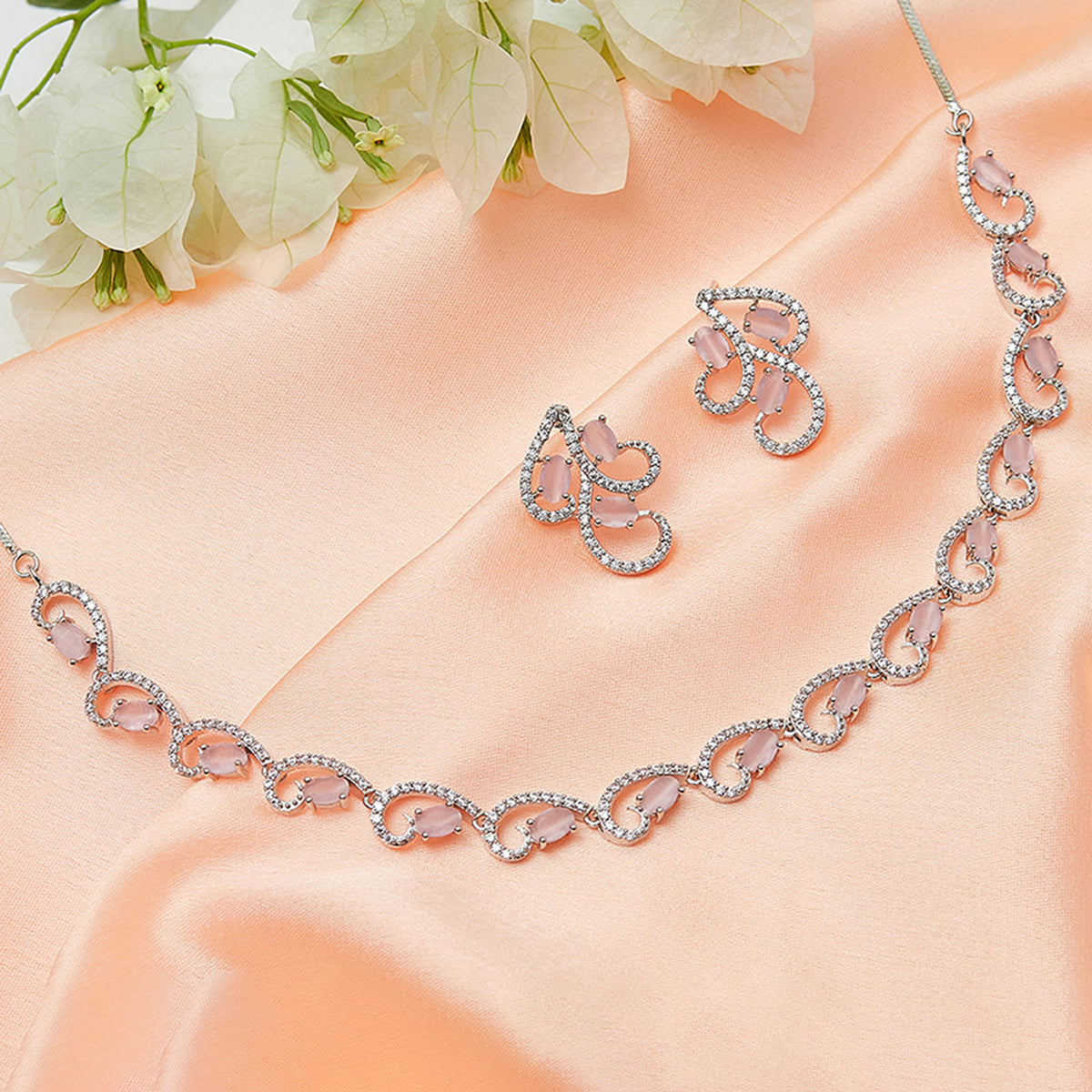Sparkling Elegance Eye-Catching Necklace Set Studded With CZ Stones