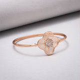 Sparkling Elegance Floral Cutwork Design Zircons Adorned Brass Rose Gold Plated Bracelet