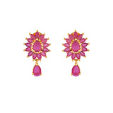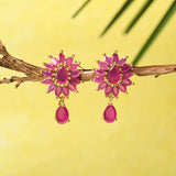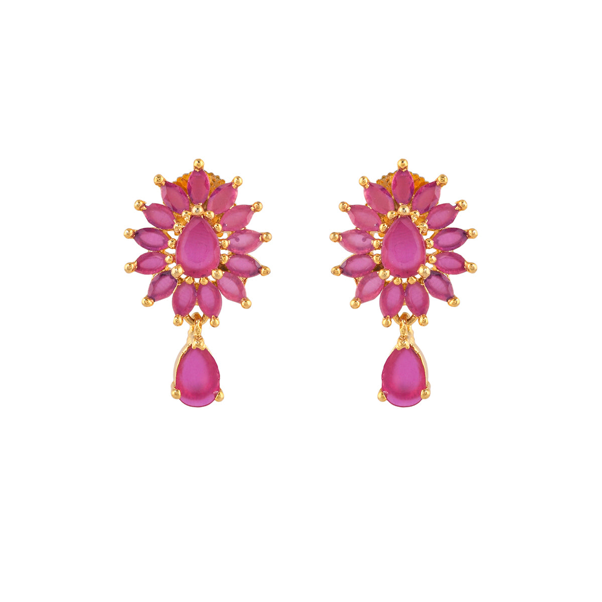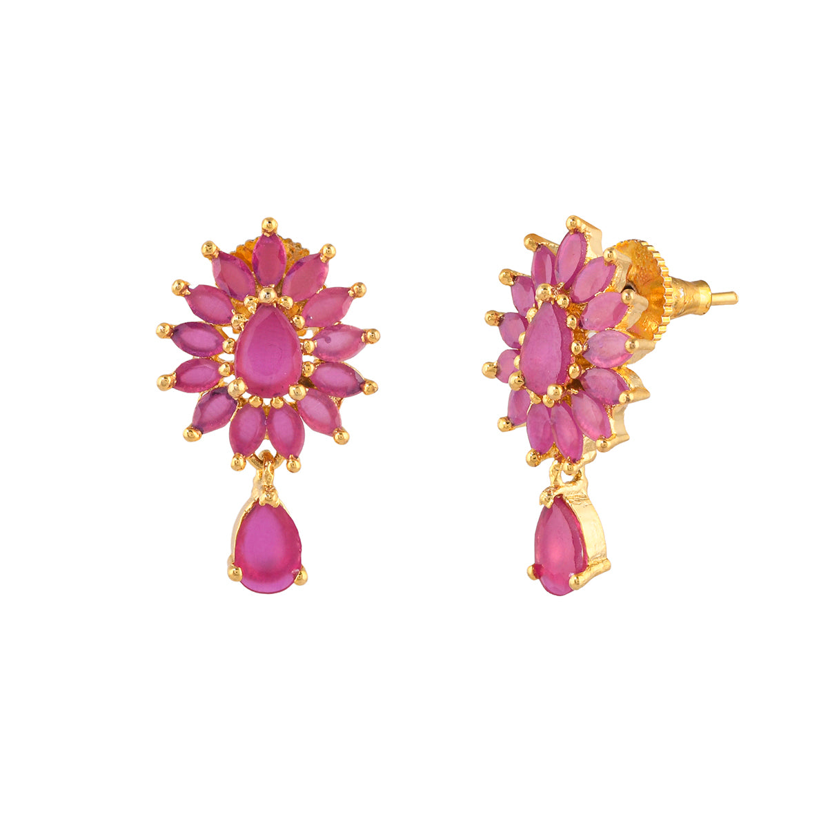 Sparkling Elegance Floral Teardrop Cut Zircons Adorned Gold Plated Drop Earrings