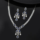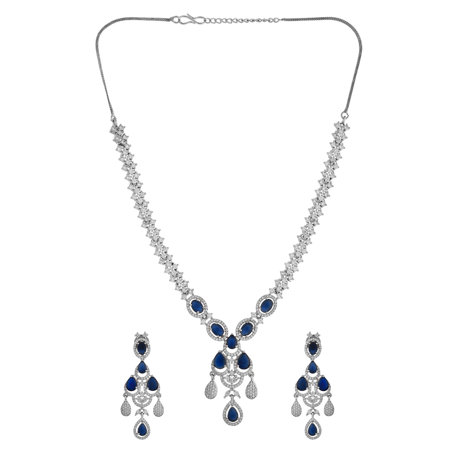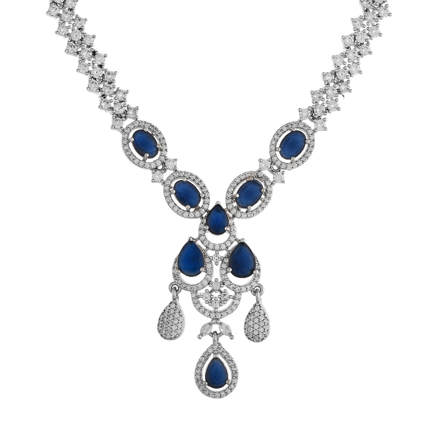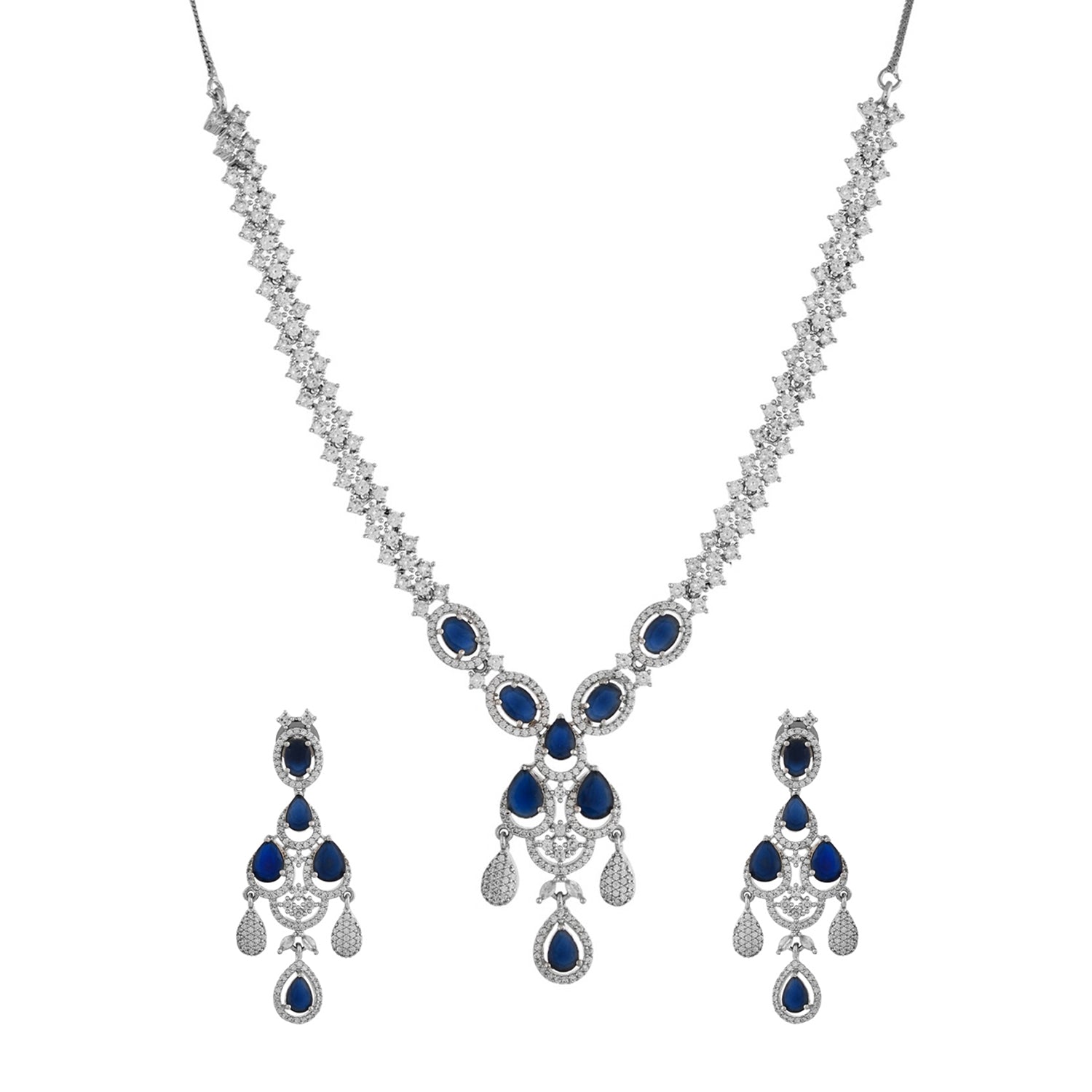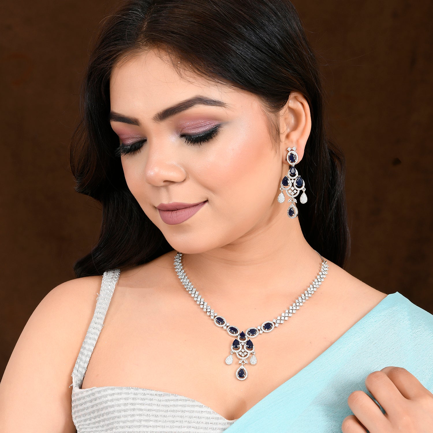 Sparkling Elegance Glamorous Blue American Diamond Necklace Set
