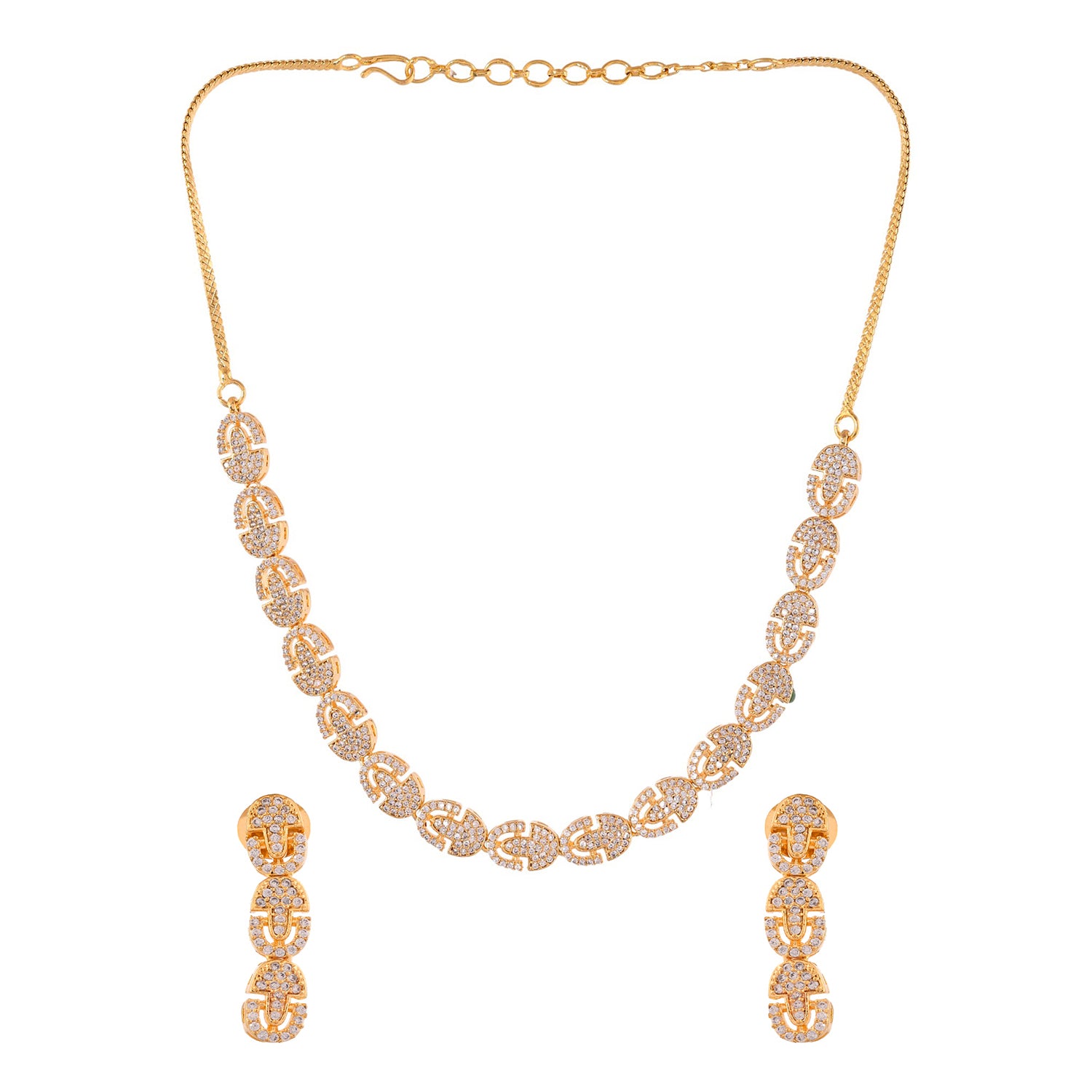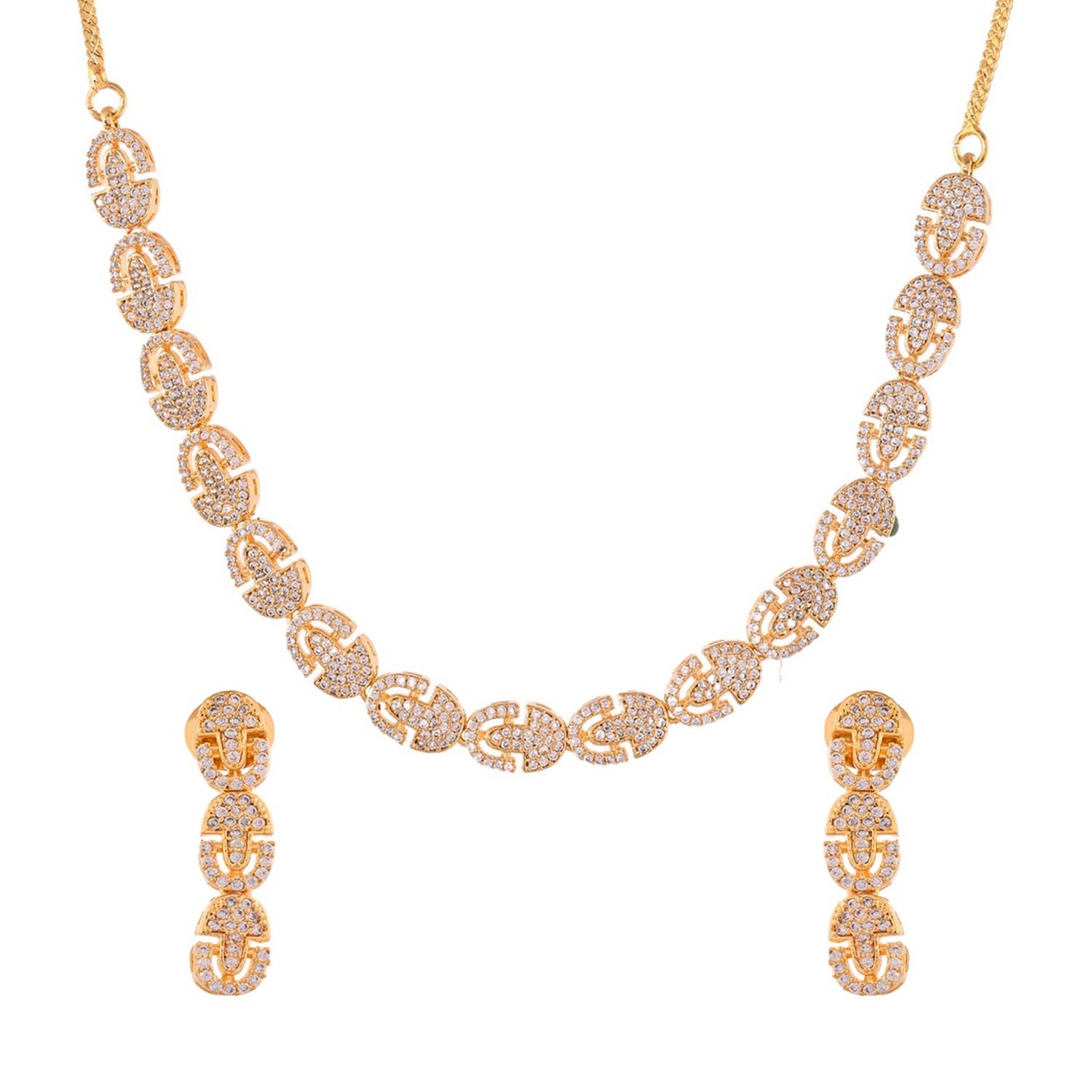 Sparkling Elegance Glamorous Golden American Diamond Necklace Set