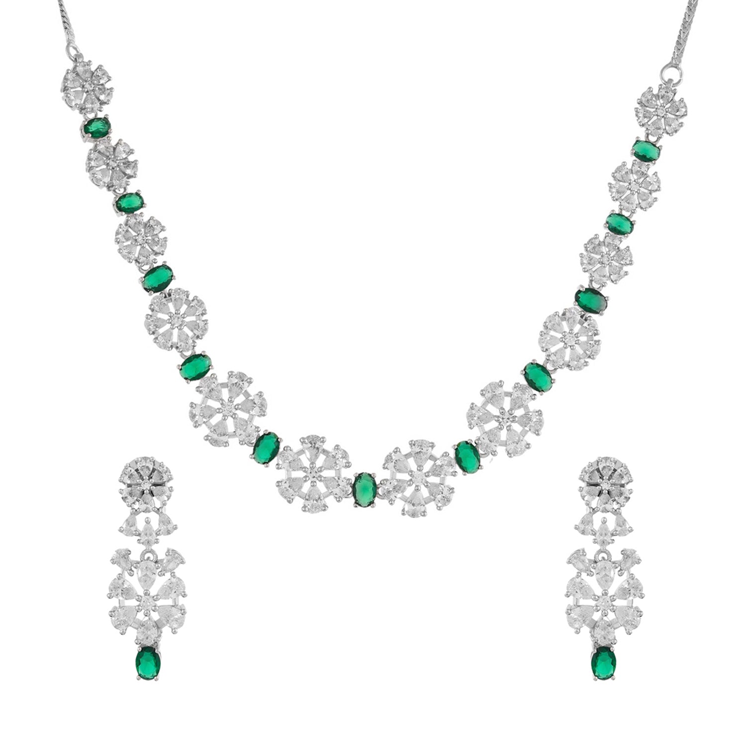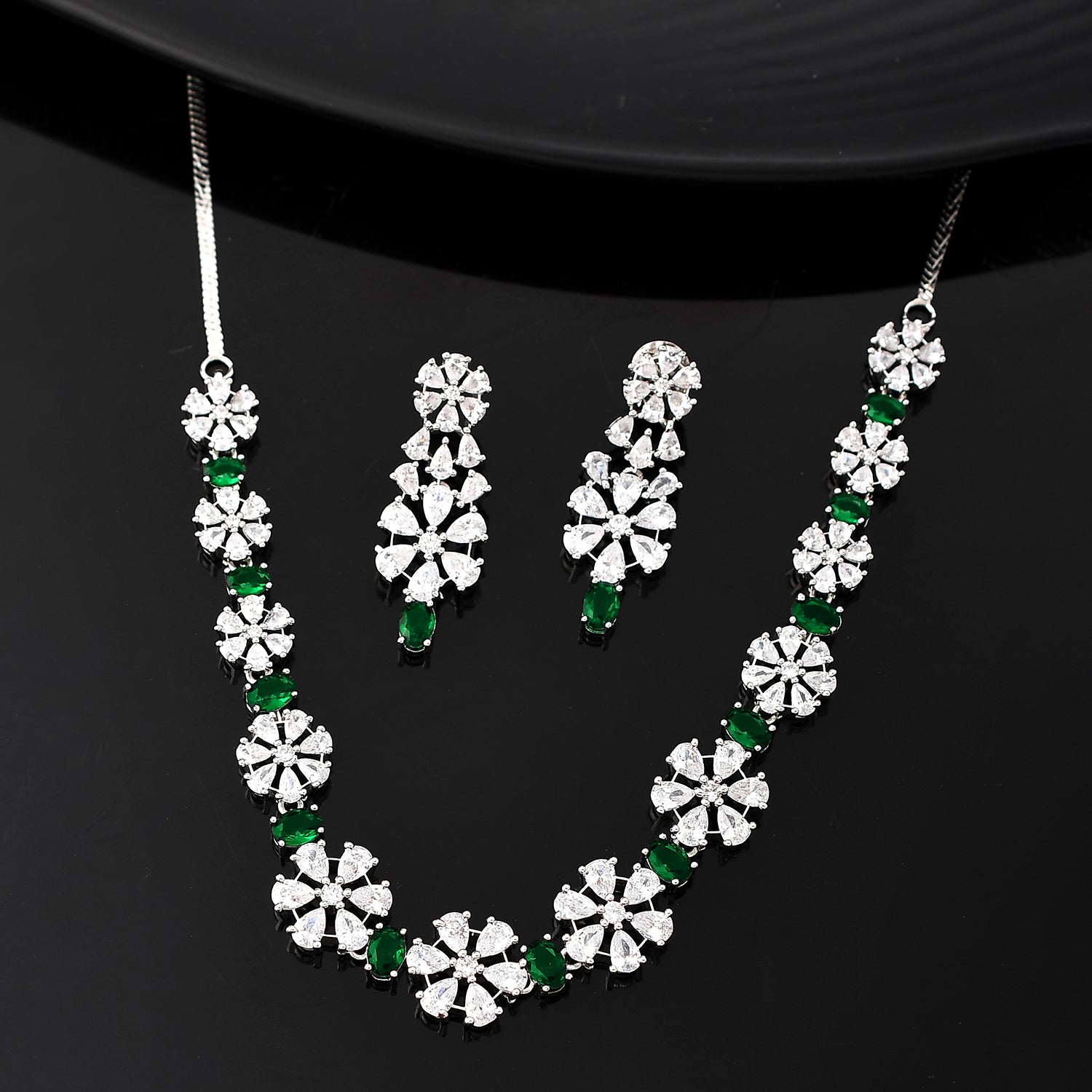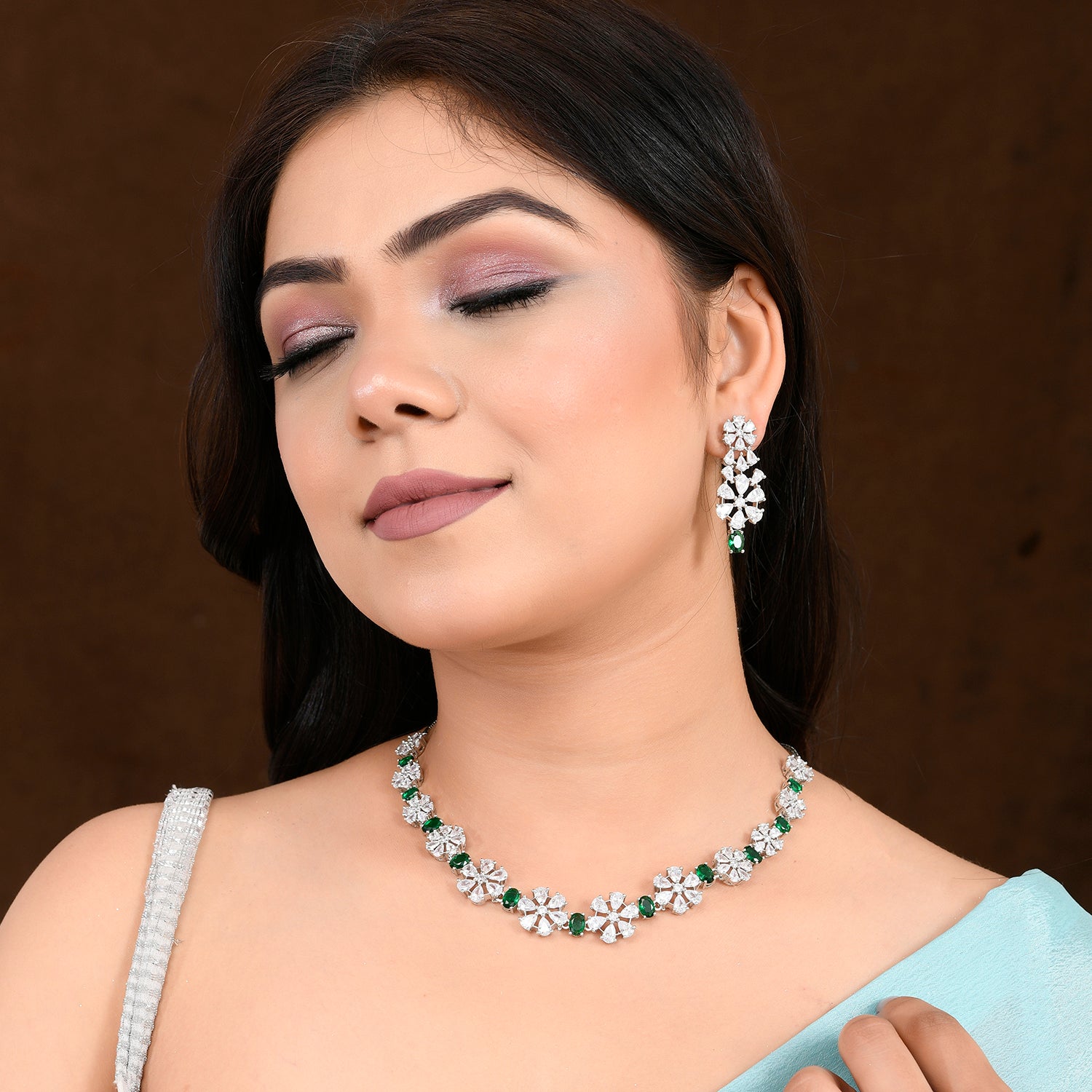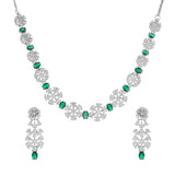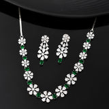 Sparkling Elegance Glamorous Green Floral American Diamond Necklace Set