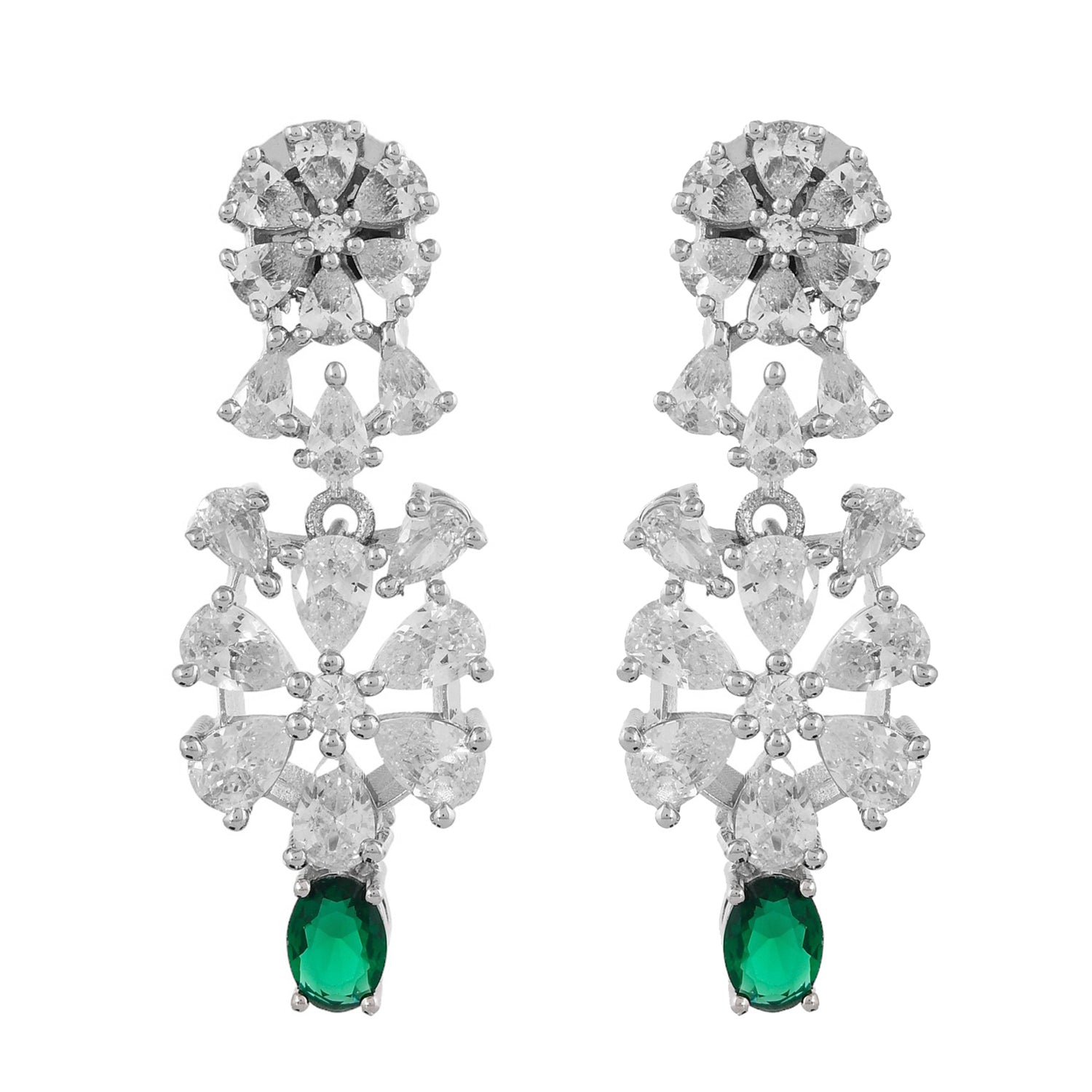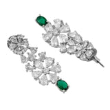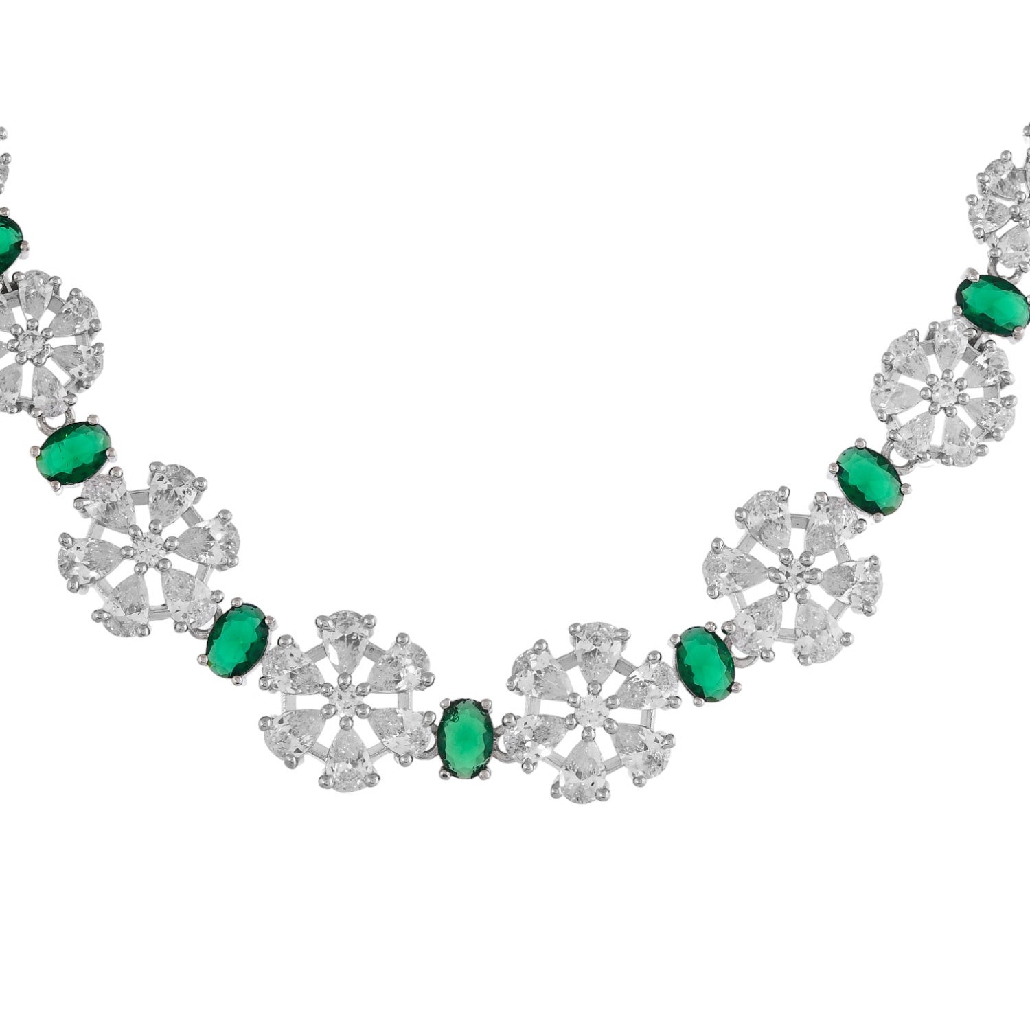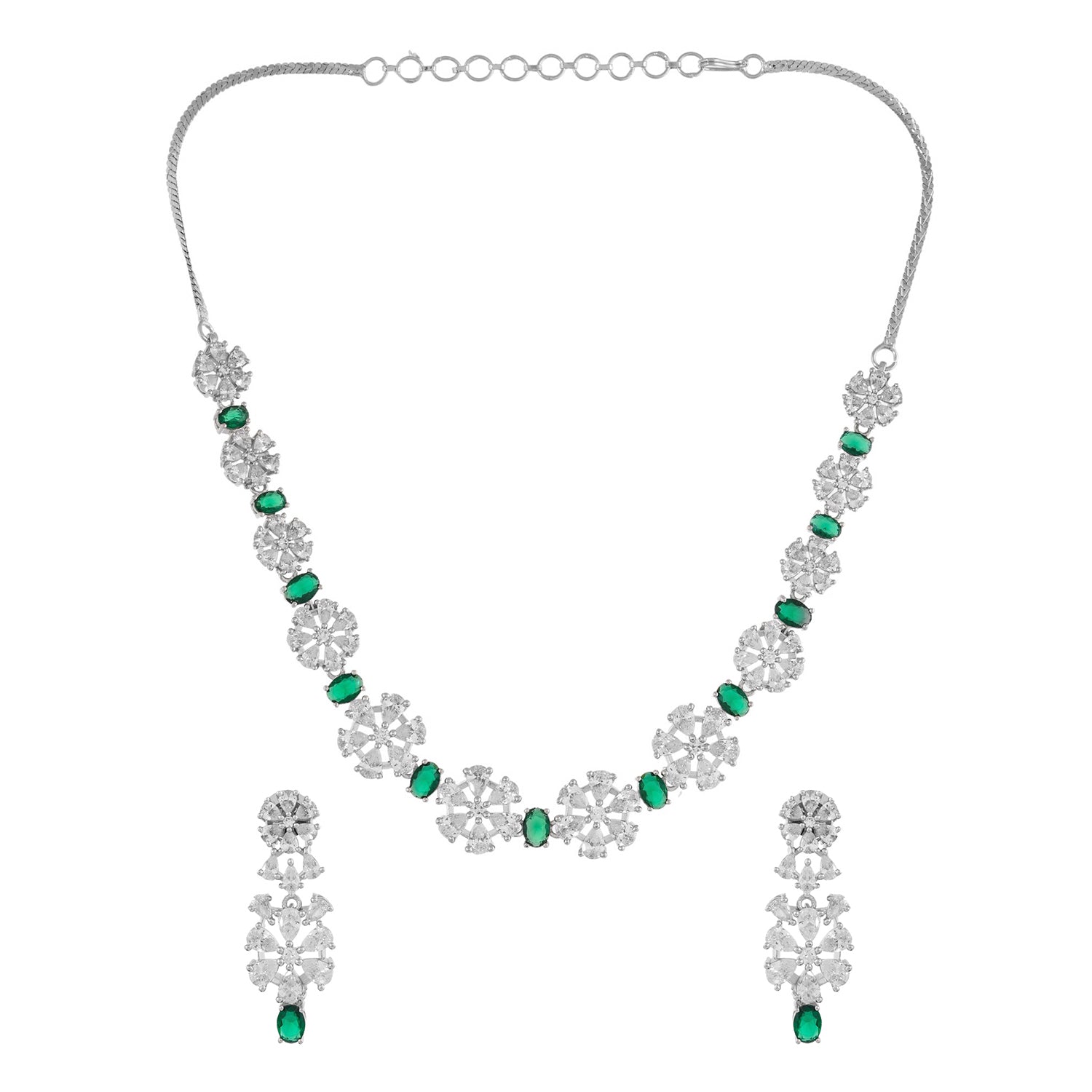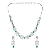 Sparkling Elegance Glamorous Green Floral American Diamond Necklace Set
