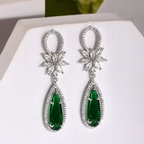 Sparkling Elegance Glamorous Green Marquise American Diamond Dangler Earrings