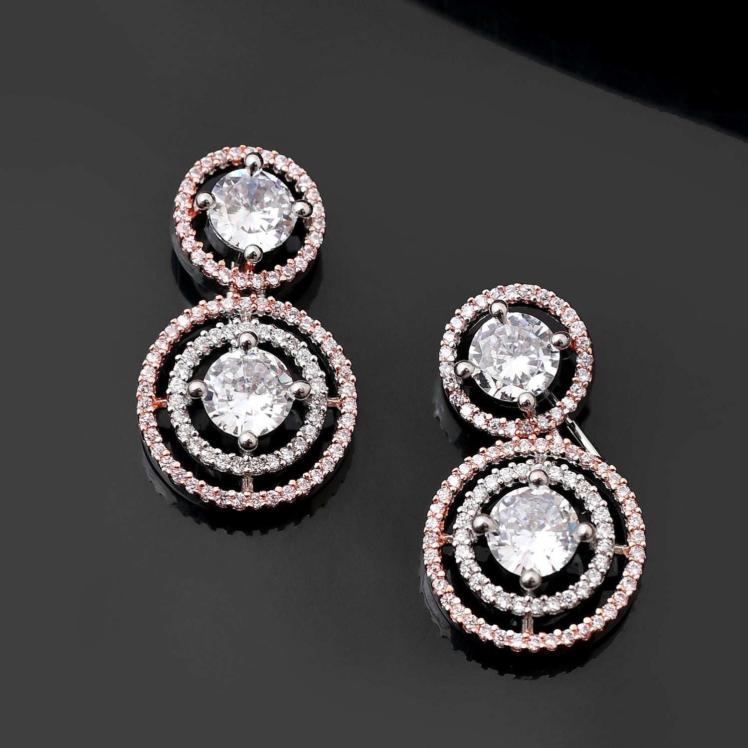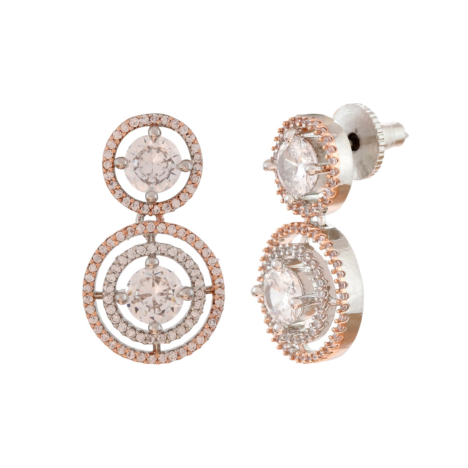 Sparkling Elegance Gleam Queen Dual Tone American Diamond Earrings