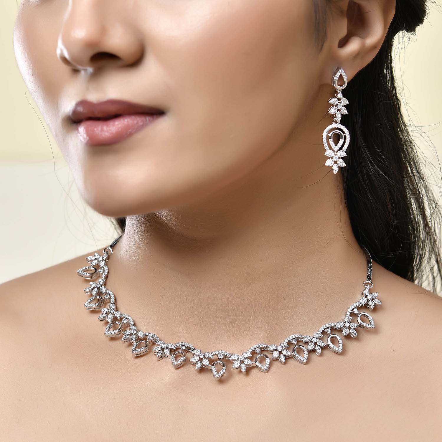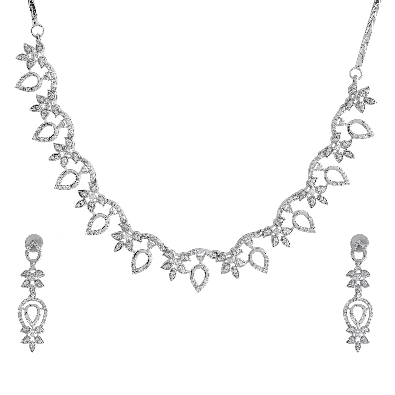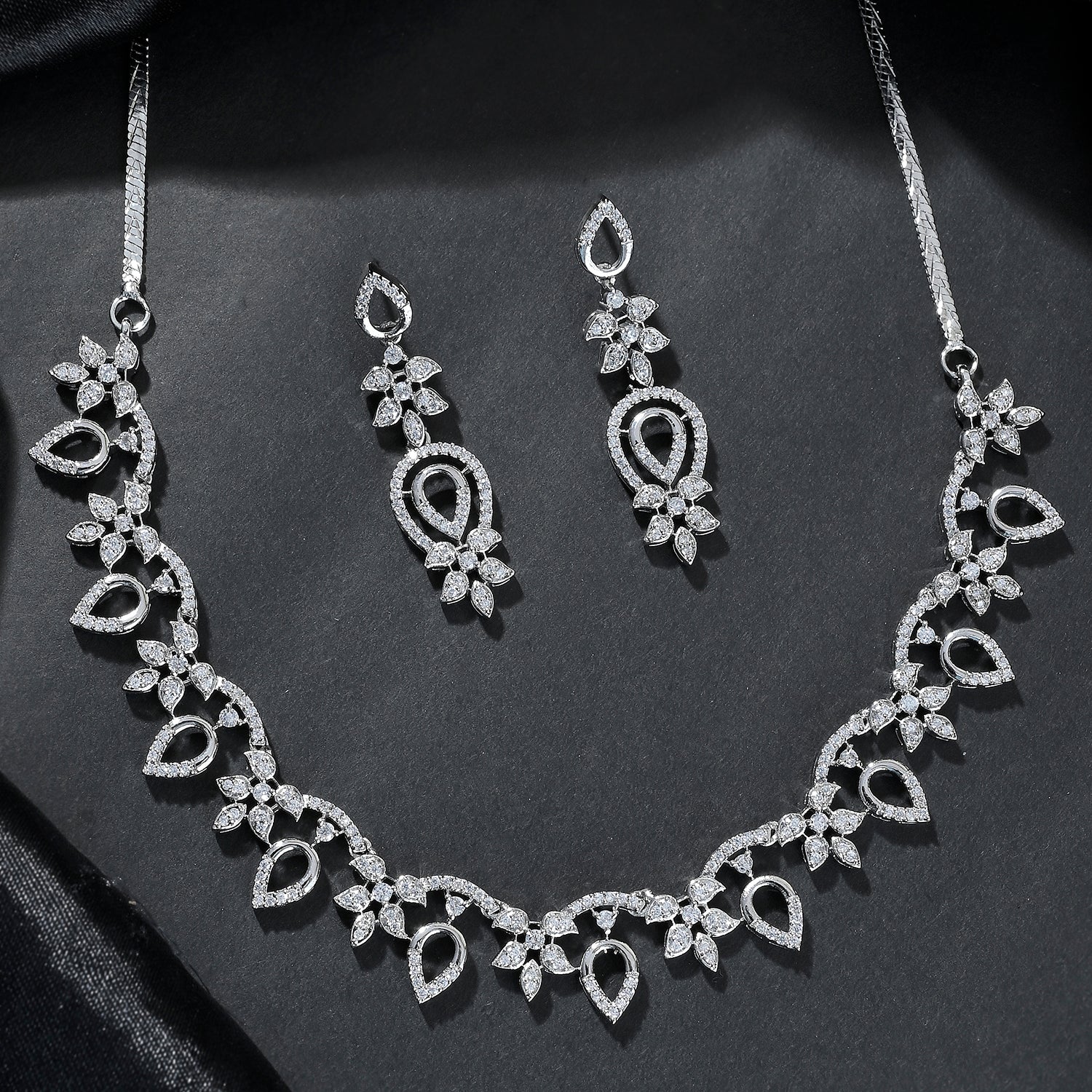 Sparkling Elegance Gleaming Blossom American Diamond Necklace Set