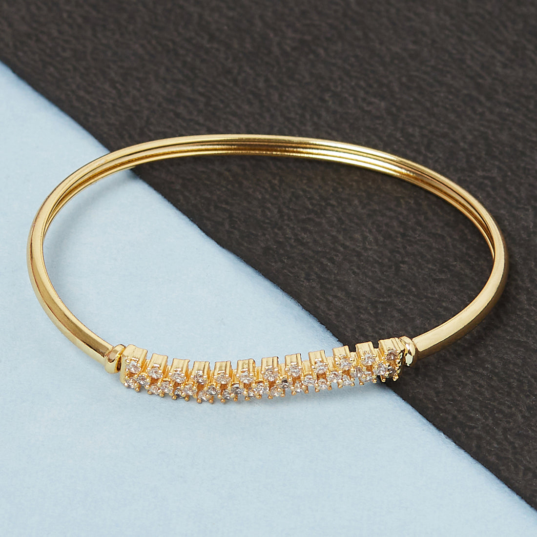 This brass gold plated bracelet studded with finest quality CZ stones is made specially for you. This sleek bracelet will look perfect on you. Wear it everyday with any outfit for a graceful look.