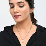 Large square cut zirconia gemstone adorned beaded mangalsutra. Made from brass and yellow gold plated. Lightweight, comfortable and versatile.