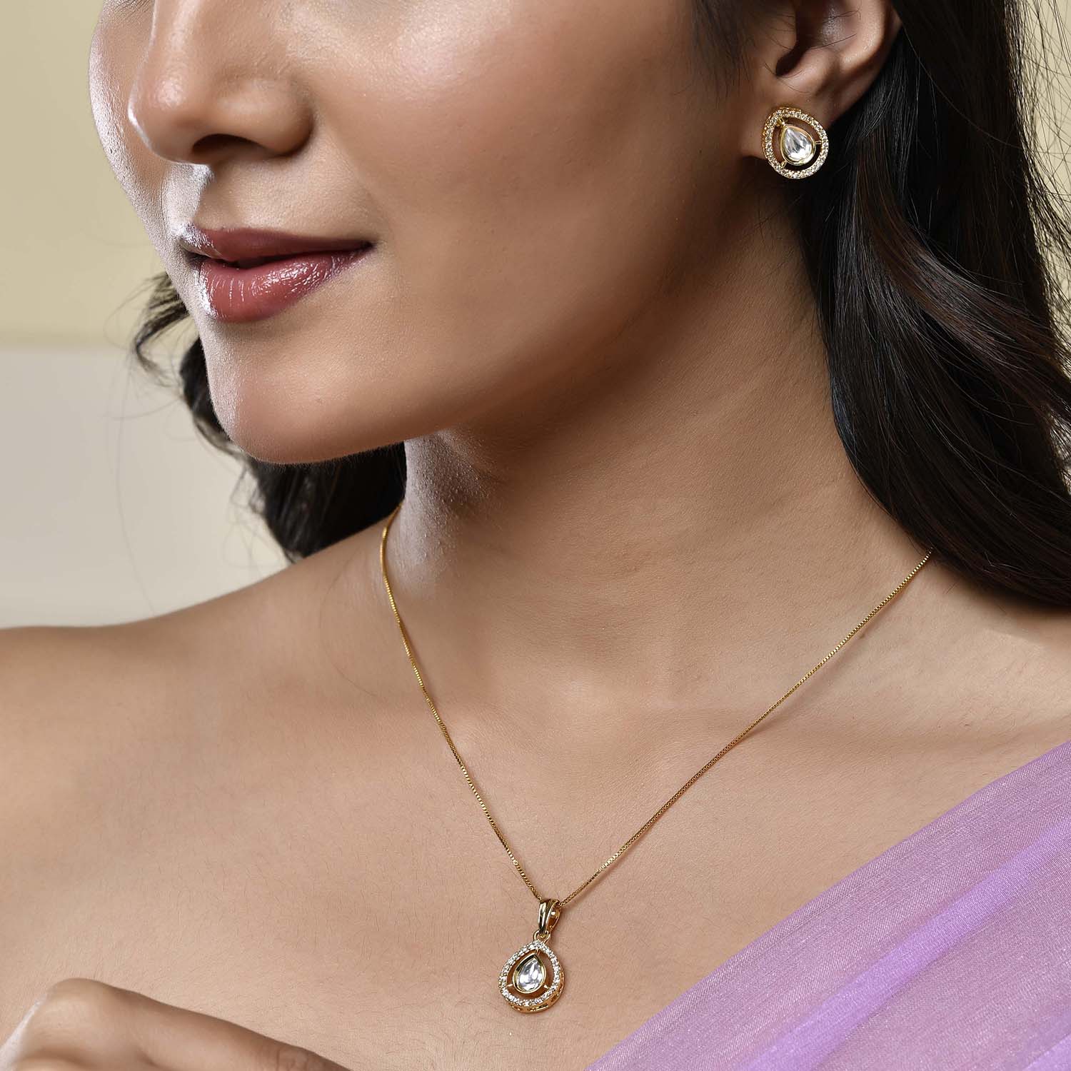 Sparkling Elegance Golden Bliss American Diamond Pendant Set