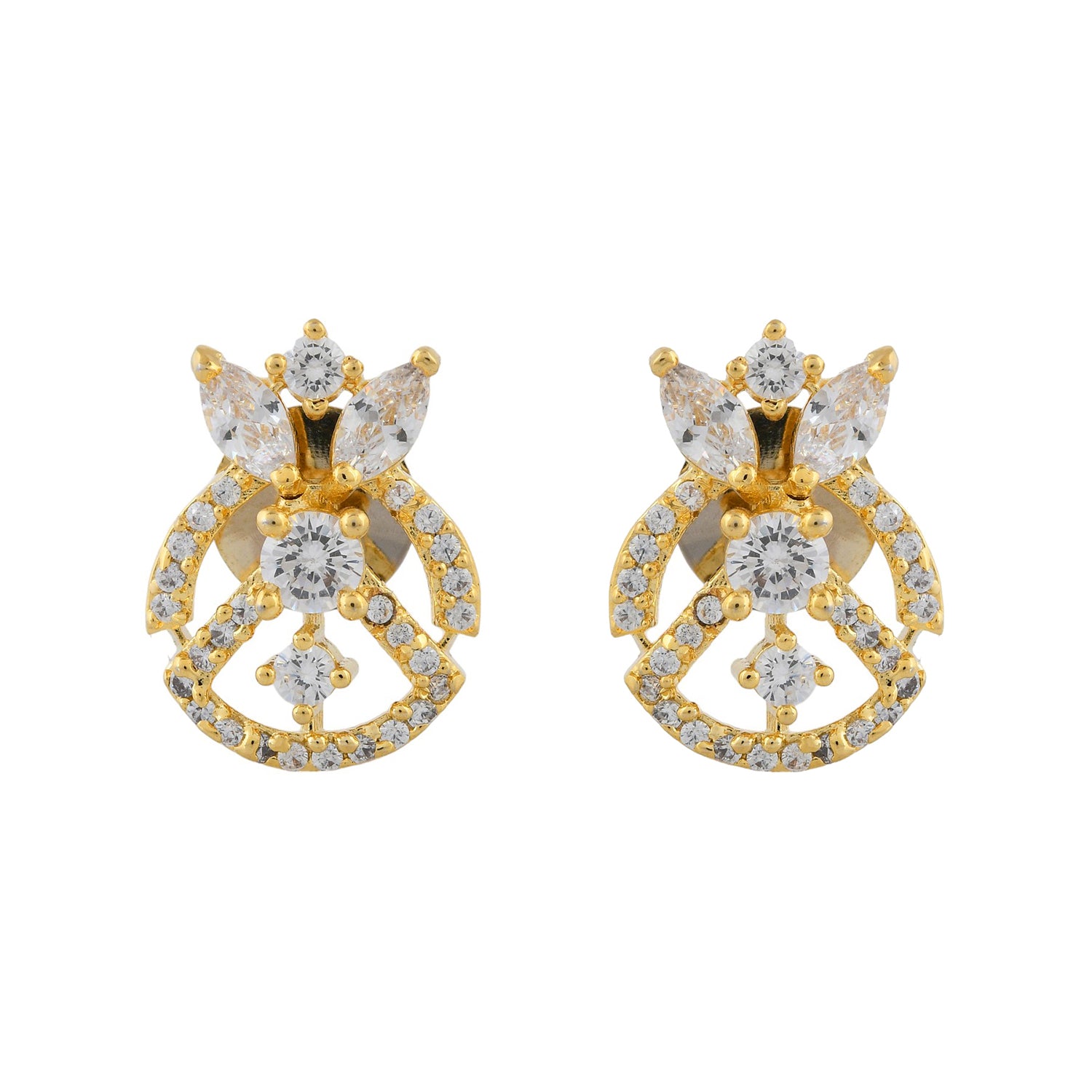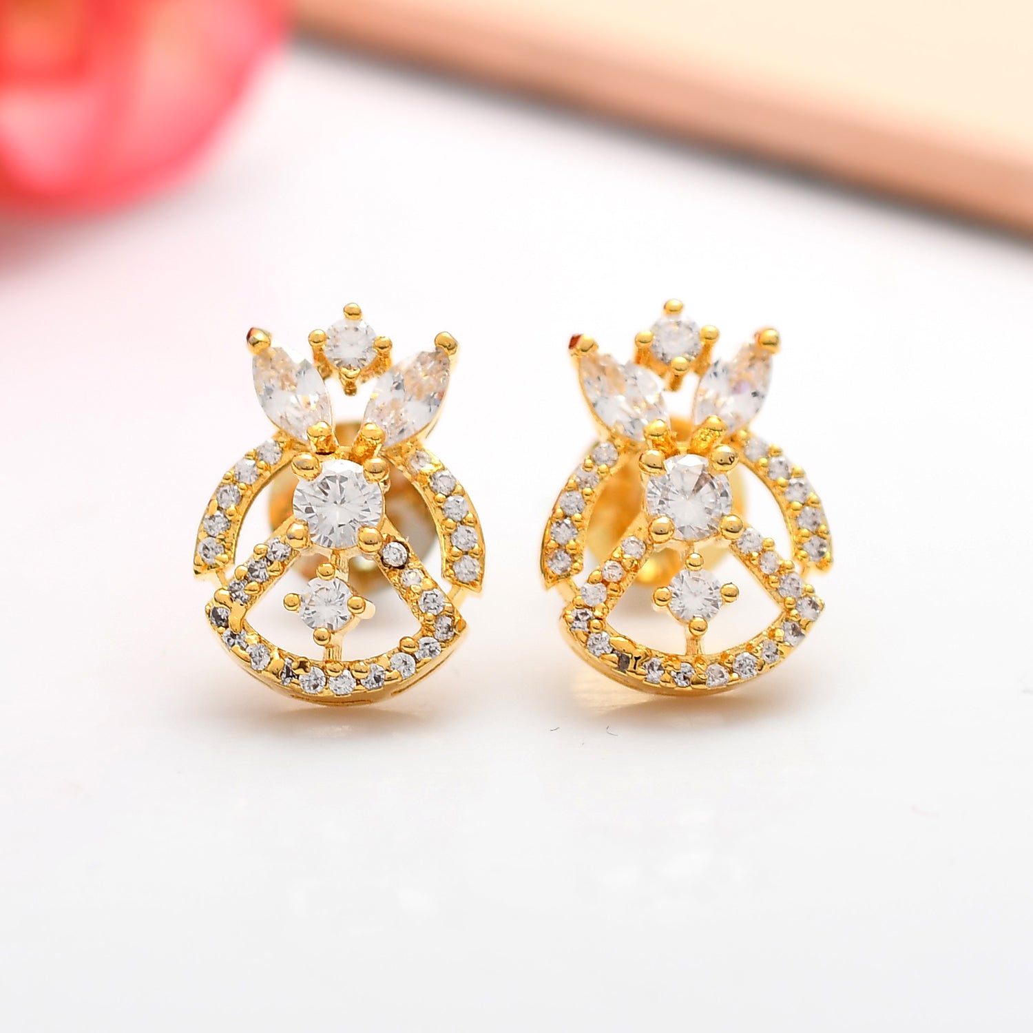 Sparkling Elegance Golden Crown American Diamond Studs Earrings