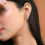 Crafted from high-quality brass and adorned with luxurious gold plating, each stud features a central American Diamond, prong-set and surrounded by a halo of smaller, meticulously placed American Diamonds, creating a dazzling effect.The intricate detailing includes delicate filigree work on the gold-plated brass, adding depth and texture to the overall design. Perfect for any occasion, these party wear studs earrings for women are ideal for adding a touch of glamour to your ensemble. Whether you’re looking for a gift for your wife, a gift for your sister, a special gift for Rakhi, or simply an indulgent gift for yourself, these Voylla earrings for women are sure to impress.
