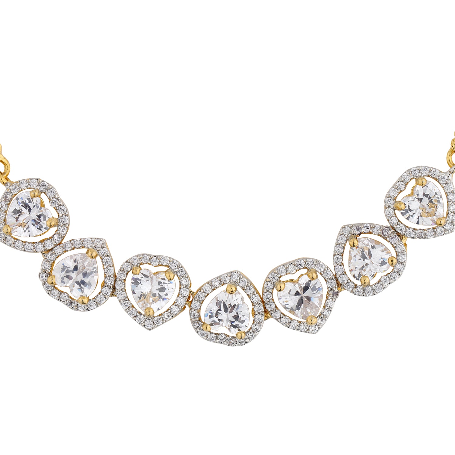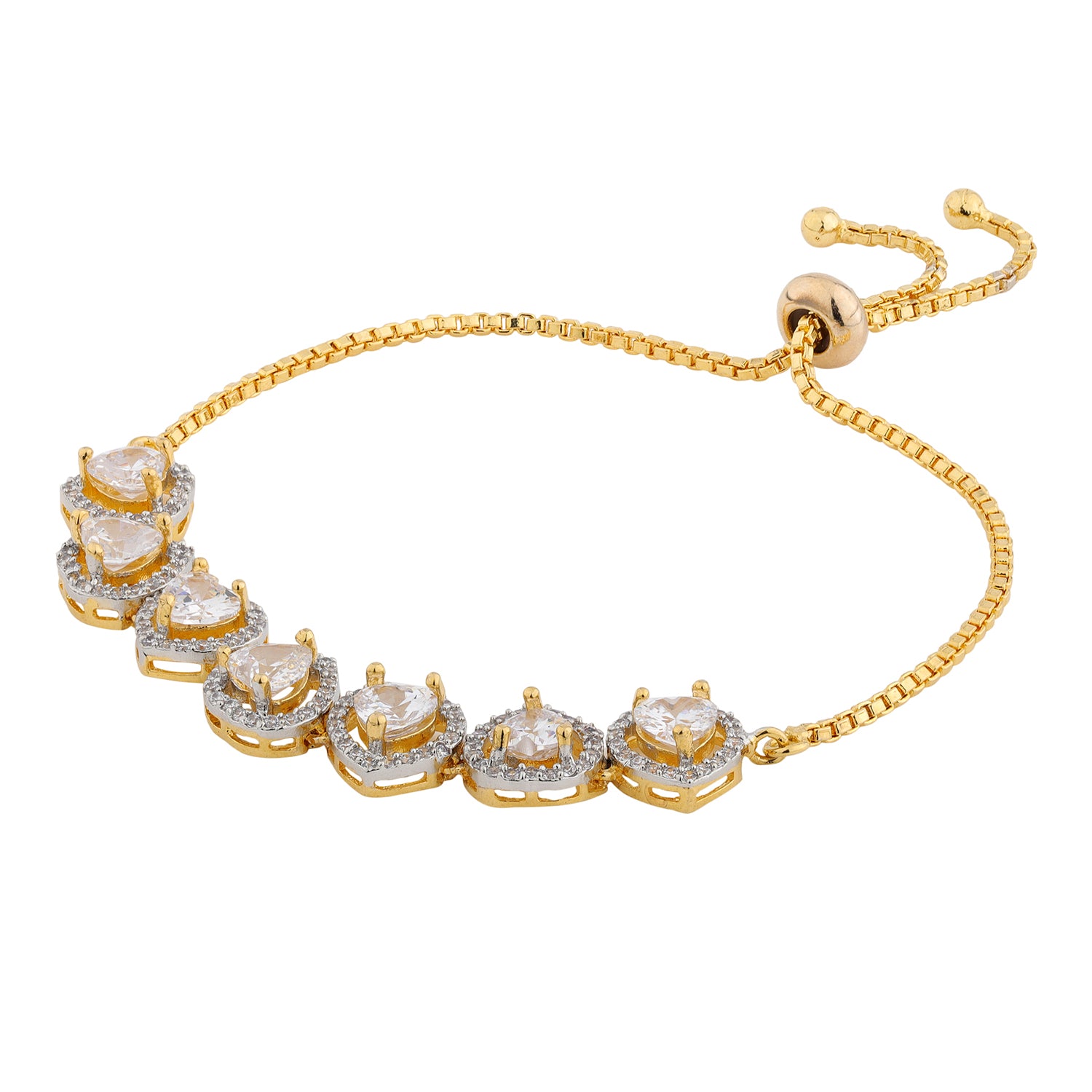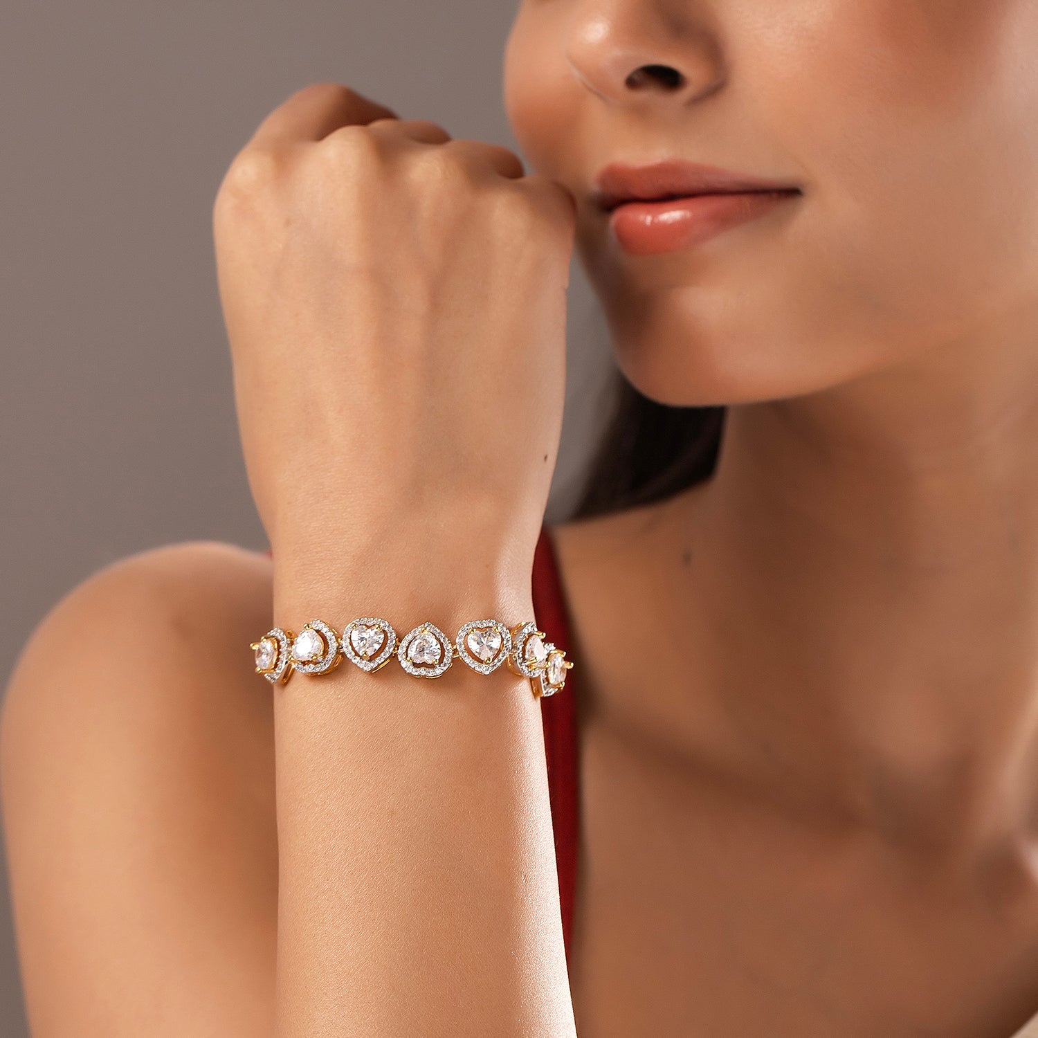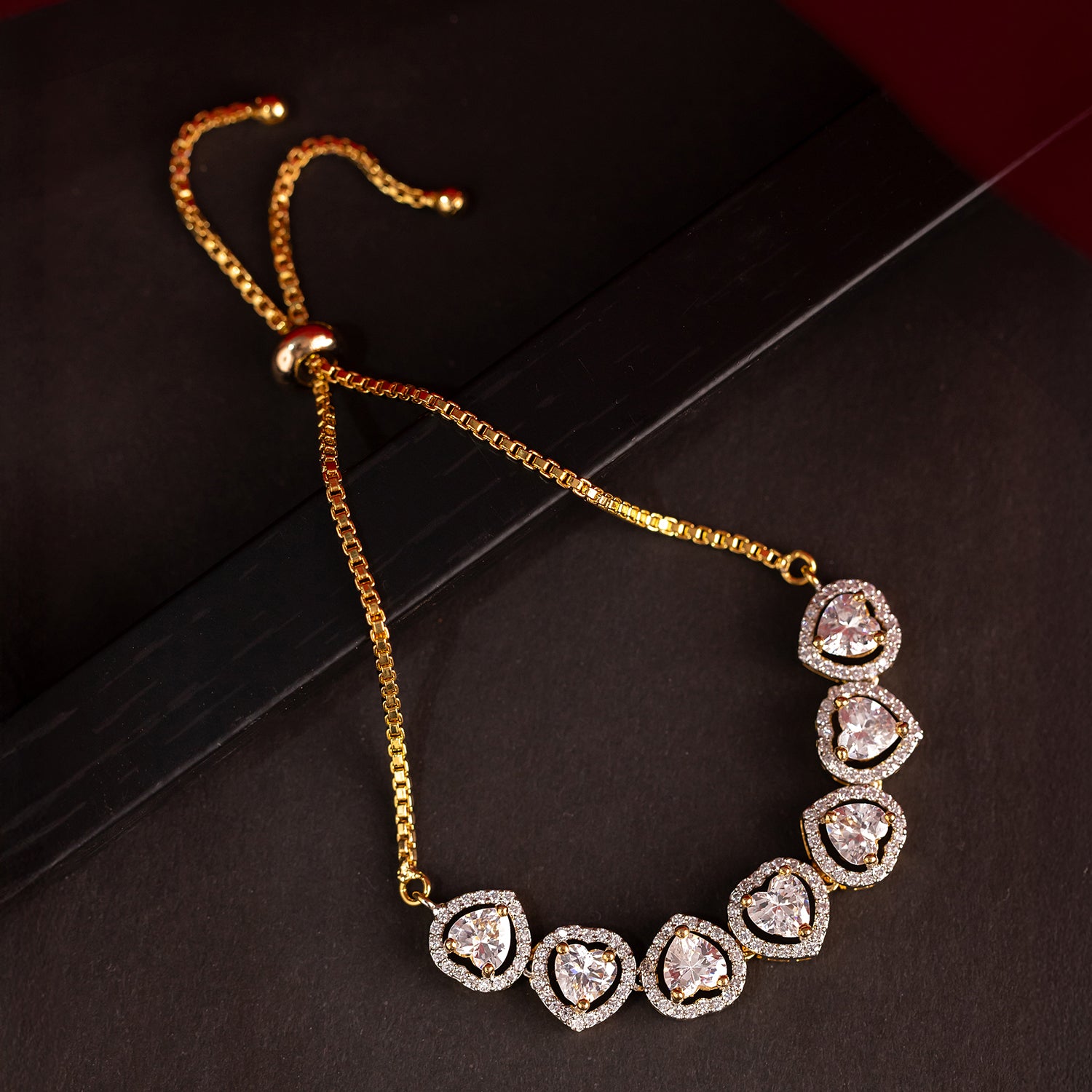 Shine bright with our Sparkling Elegance Gold Tennis Bracelet, a dazzling masterpiece designed to elevate your style with its stunning craftsmanship. Made from high-quality brass and finished with luxurious yellow gold plating, this bracelet exudes sophistication and charm. Featuring a mesmerizing row of brilliant-cut stones, it catches the light beautifully, making it the perfect statement bracelet for parties, weddings, and festive celebrations like Diwali, Raksha Bandhan, and Christmas. Whether you're heading to a glamorous event, a romantic dinner, or simply want to add a touch of chic sparkle to your office or vacation look, this bracelet is your go-to accessory. The versatile gold finish pairs effortlessly with both Western and ethnic outfits, making it ideal for everything from cocktail dresses to elegant sarees. Thoughtful and elegant, this women’s gift is perfect for your sister, wife, girlfriend, mother, or best friend—a heartfelt way to celebrate Valentine’s Day, New Year, or any special moment. Elevate your jewelry collection with this timeless treasure and let your wrist do all the talking!