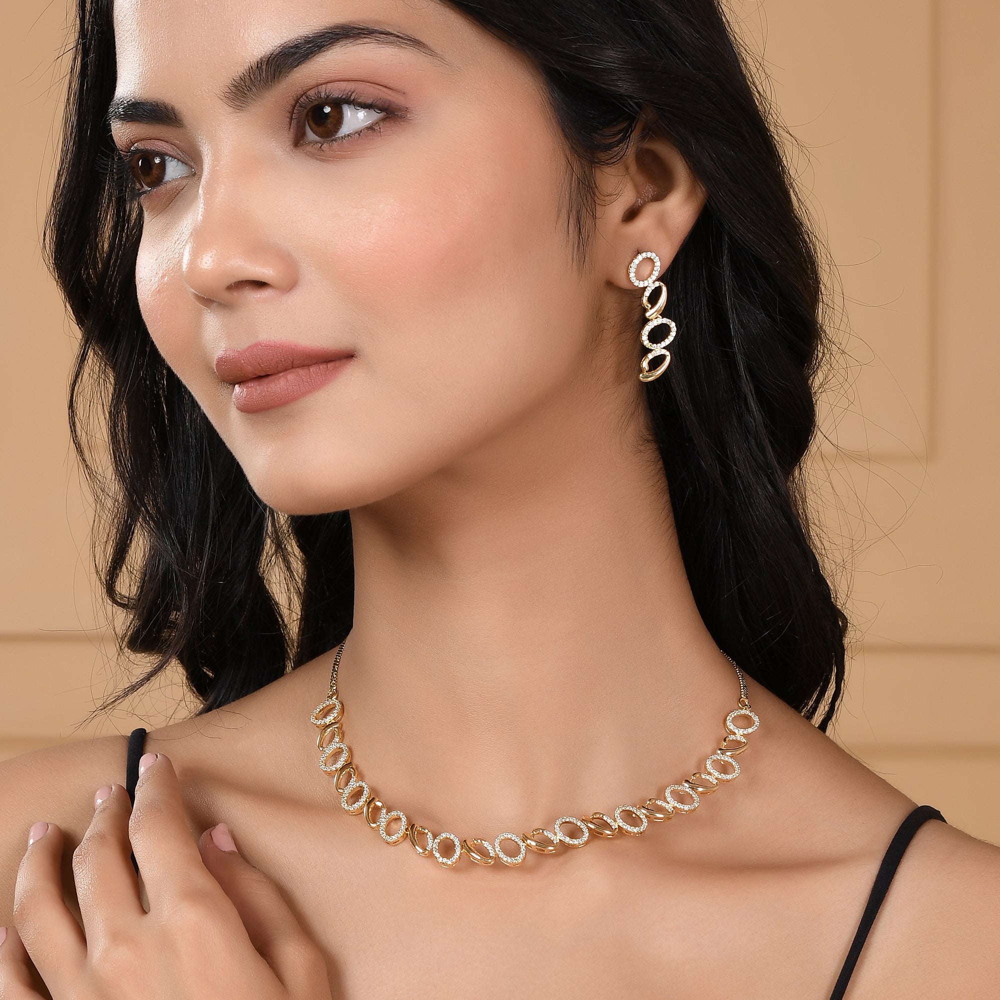 Embrace the allure of the Golden Harmony Necklace Set, a symbol of refined beauty and sophistication. Whether you're attending a special occasion or seeking to elevate your everyday style, this necklace set is a timeless choice for those who appreciate the perfect fusion of delicate design and radiant charm.