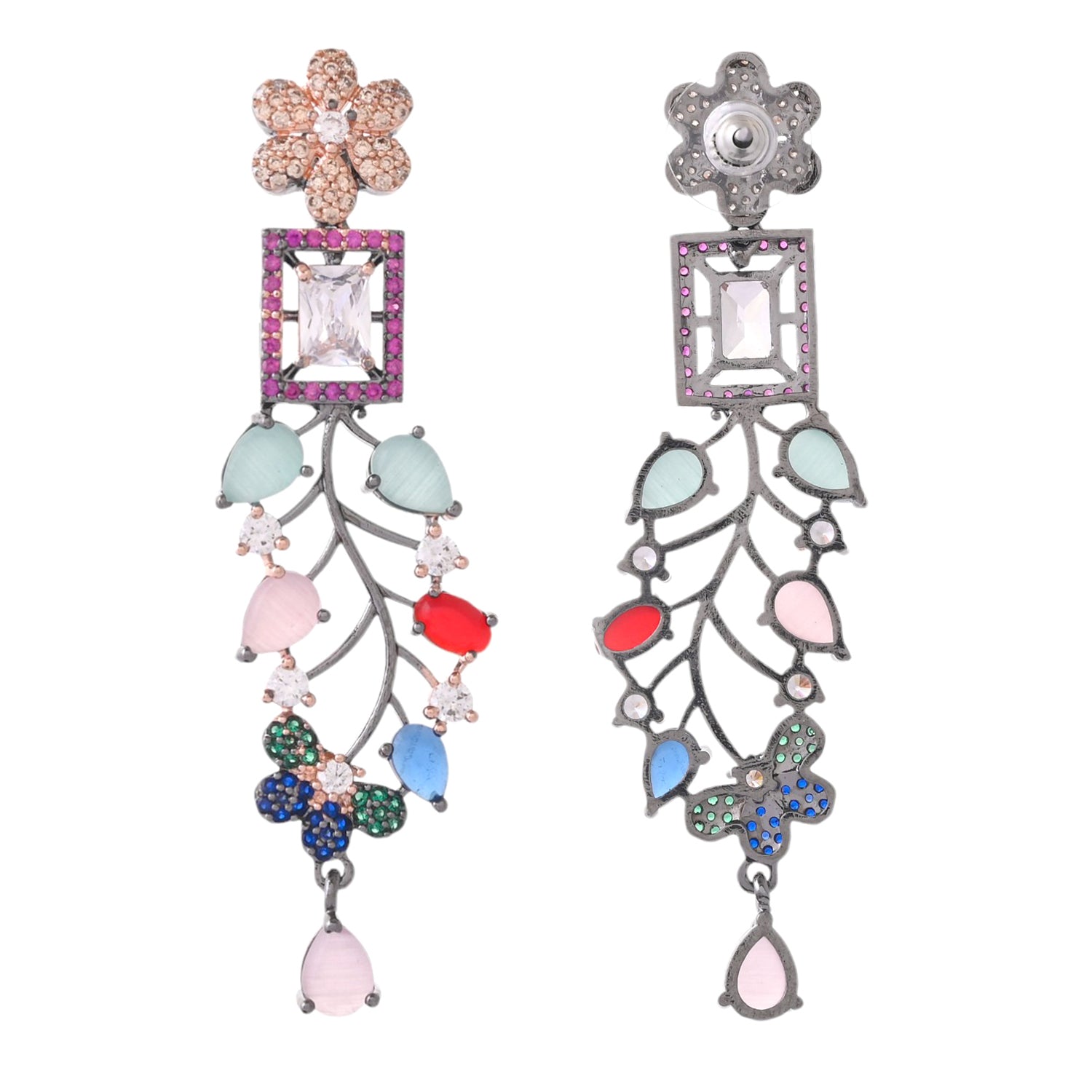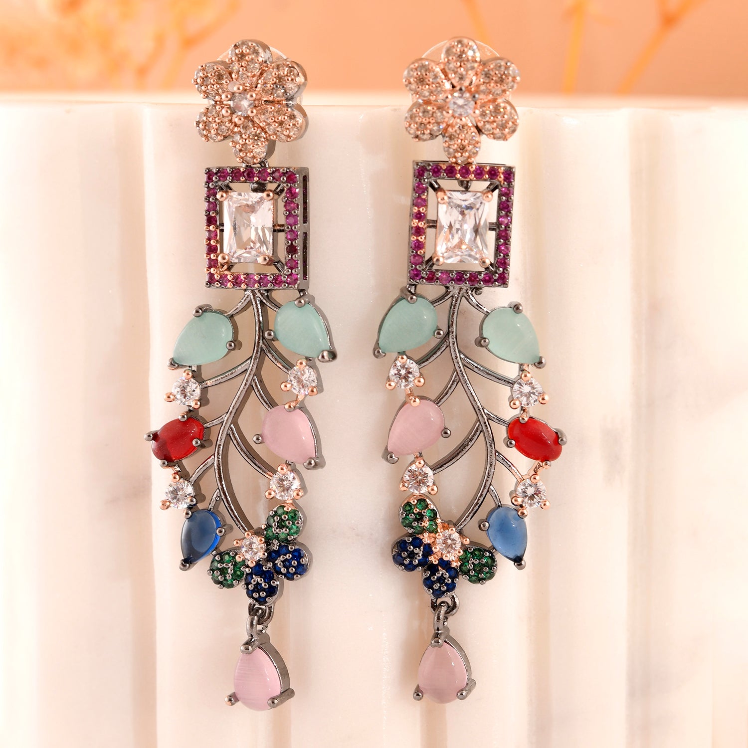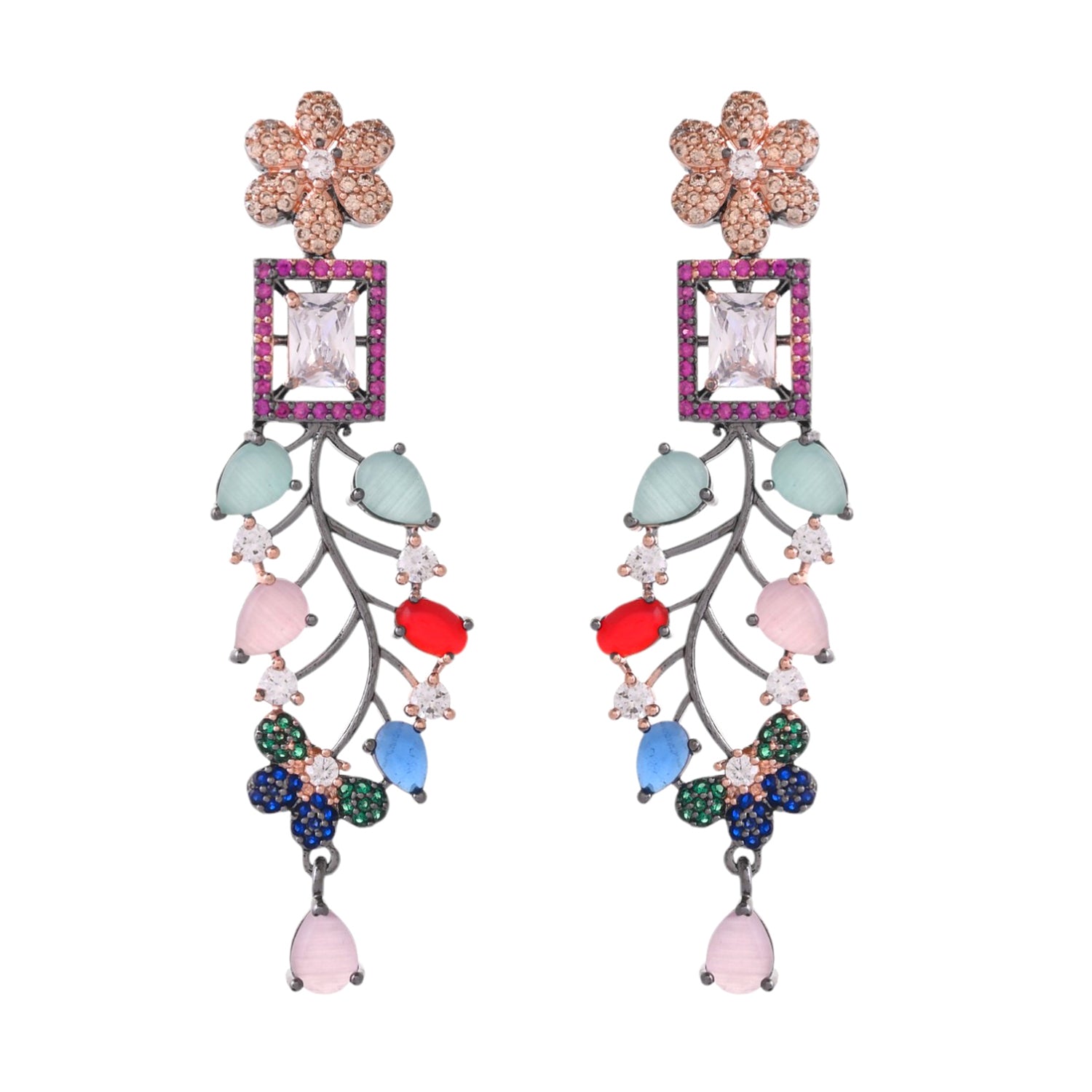Sparkling Elegance Gorgeous Bloom Multicolor American Diamond Earrings