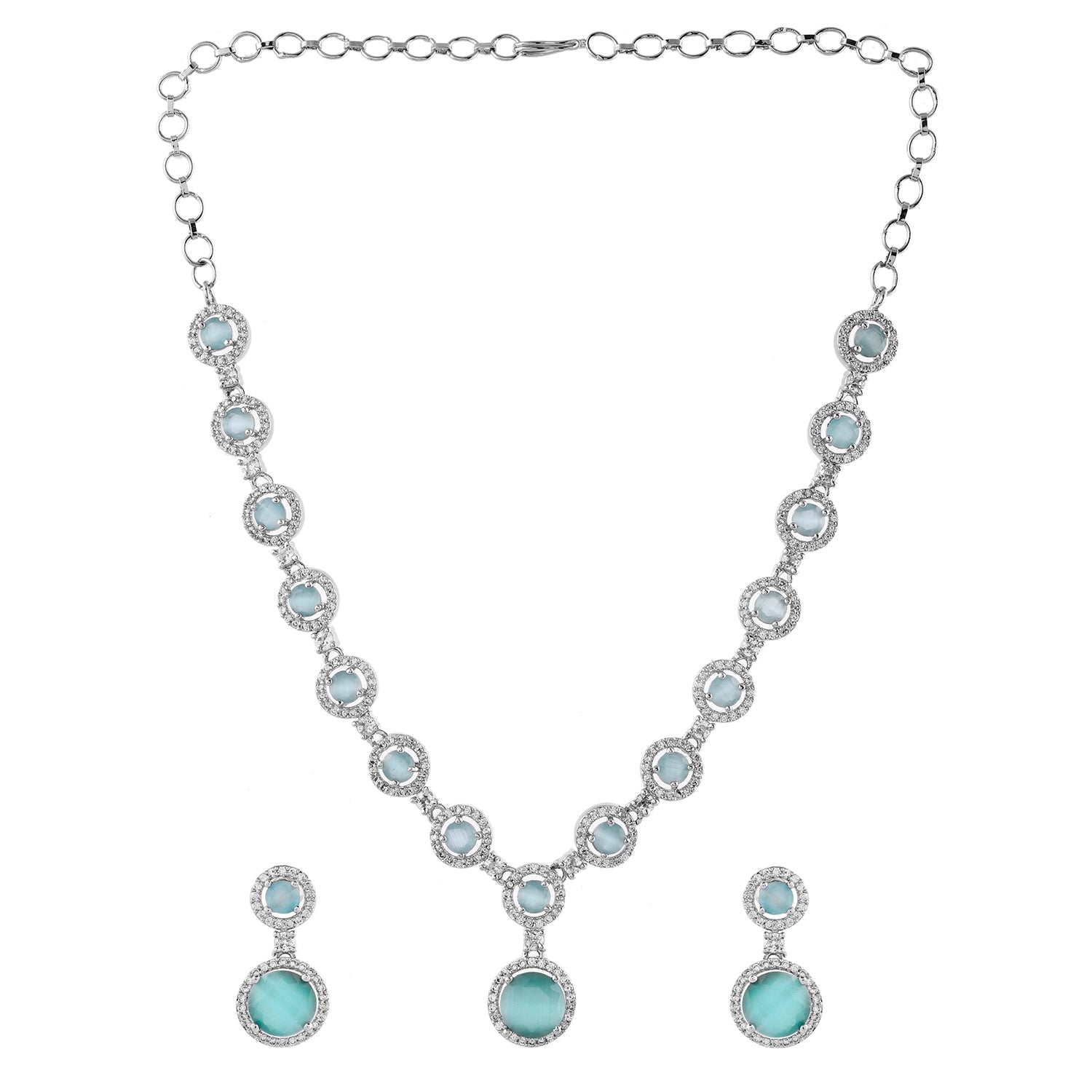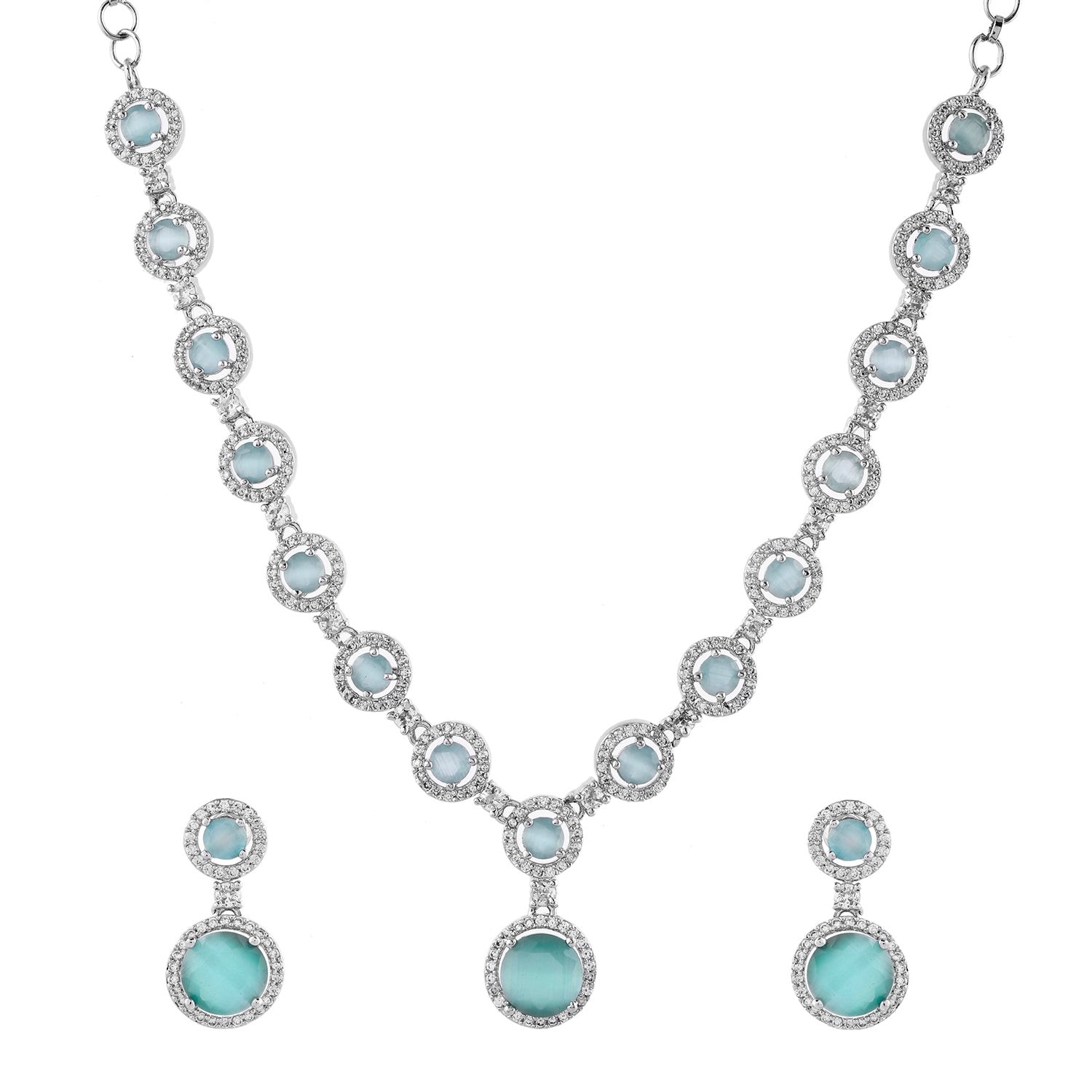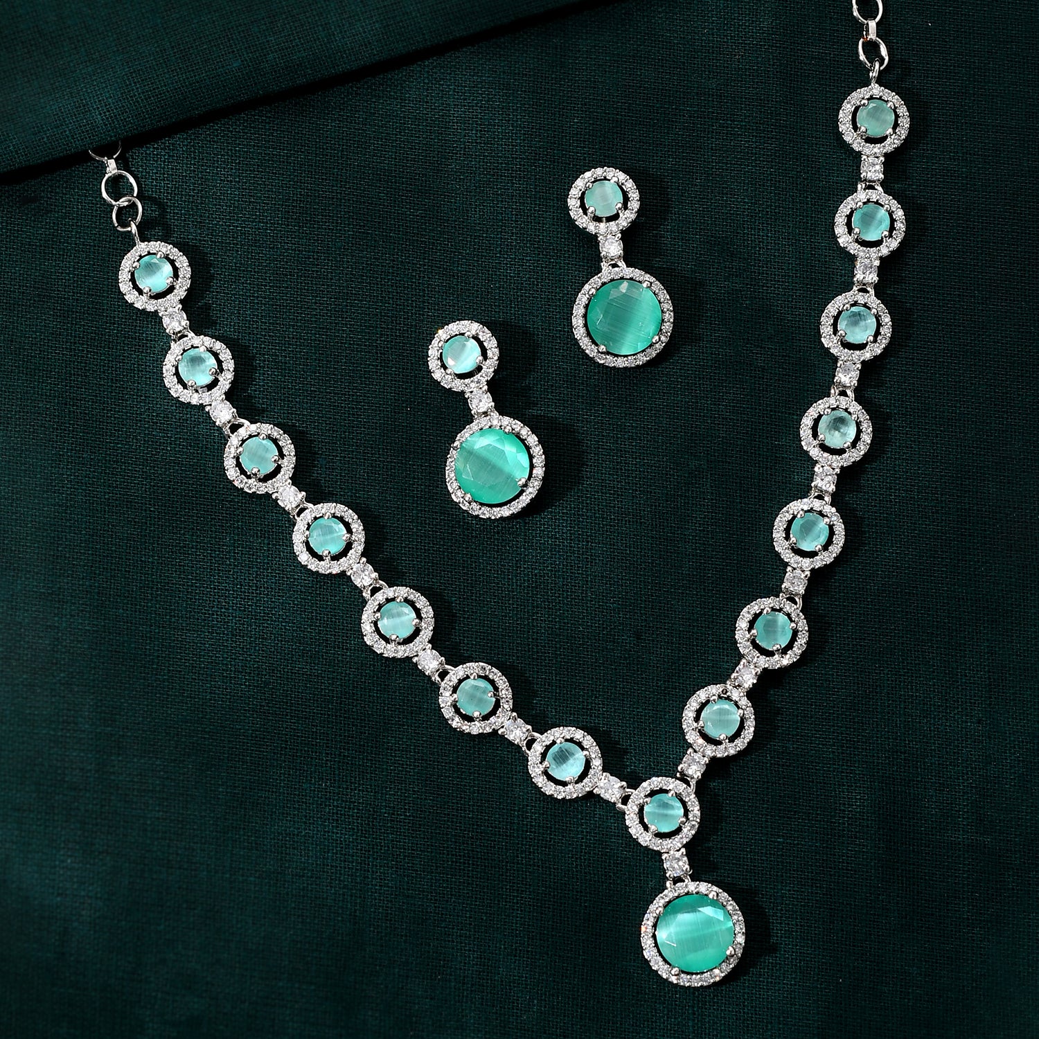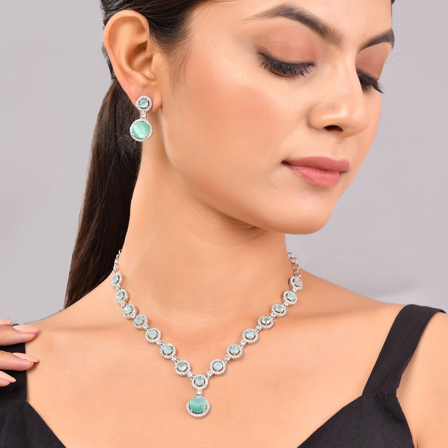 Sparkling Elegance Graceful Halo American Diamond Necklace Set