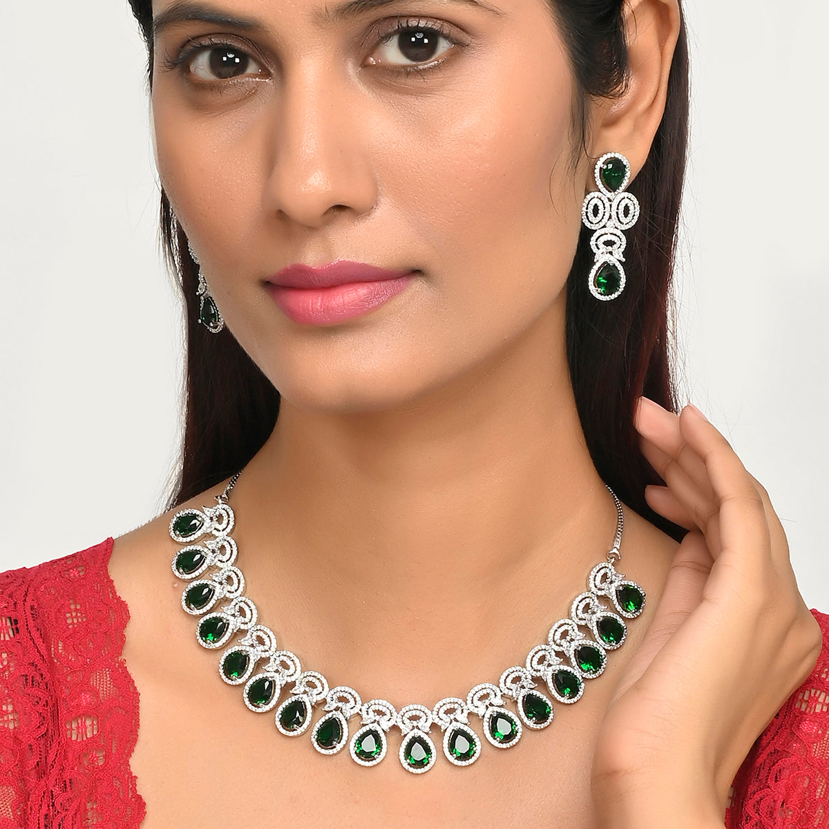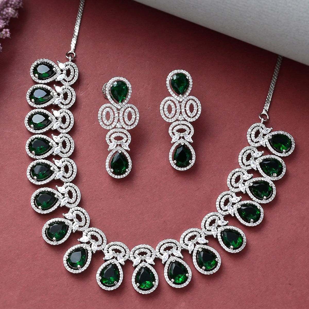 Sparkling Elegance Green Teardrop Zircons Jewellery Set