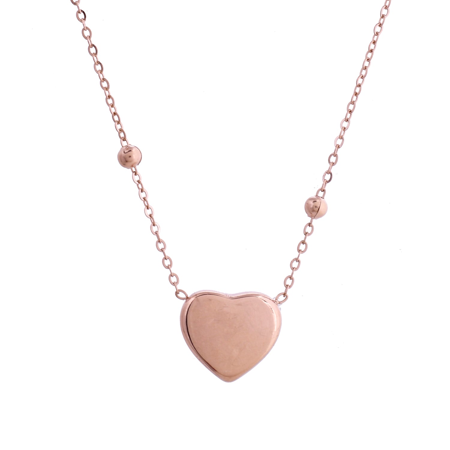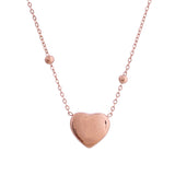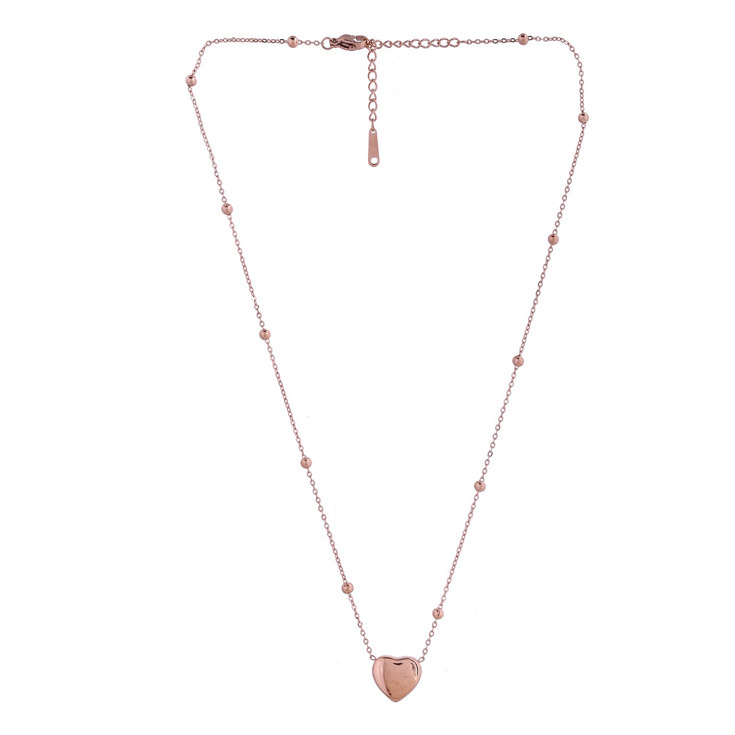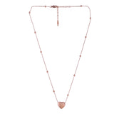 The Heartbeat Bliss Gold Necklace from the Sparkling Elegance collection is a stunning piece of jewelry crafted from high-quality stainless steel and plated with luxurious rose gold. This necklace features a delicate chain adorned with small, polished beads and a charming heart-shaped pendant that adds a touch of elegance and romance to any outfit. The rose gold plating gives it a warm, sophisticated glow, making it perfect for both everyday wear and special occasions. Whether you're dressing up for a party, a wedding, or a festive celebration, this necklace is a versatile accessory that complements any style. It also makes a thoughtful gift for loved ones on occasions like Valentine's Day, Diwali, Rakshabandhan, Christmas, or New Year. Pair it with contemporary earrings or a chic charm bracelet to complete your look and make a statement.
