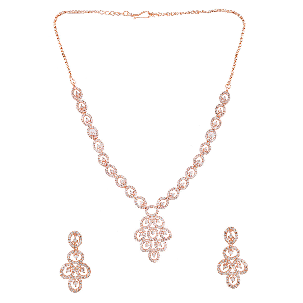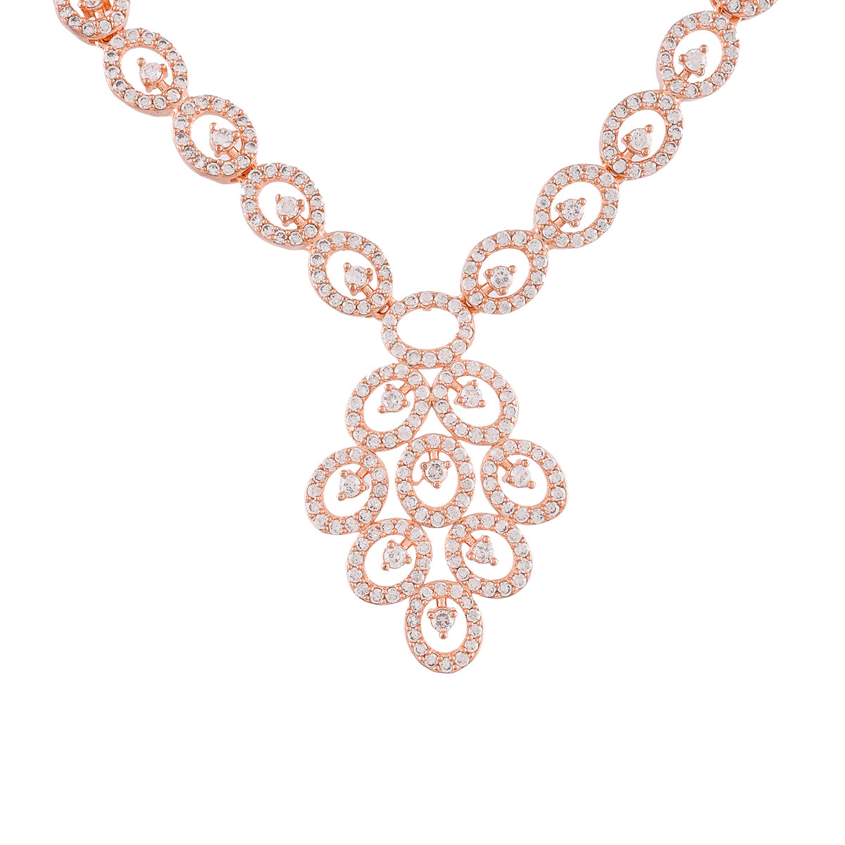 Sparkling Elegance Heavily Embellished Rose Gold Plated Jewellery Set