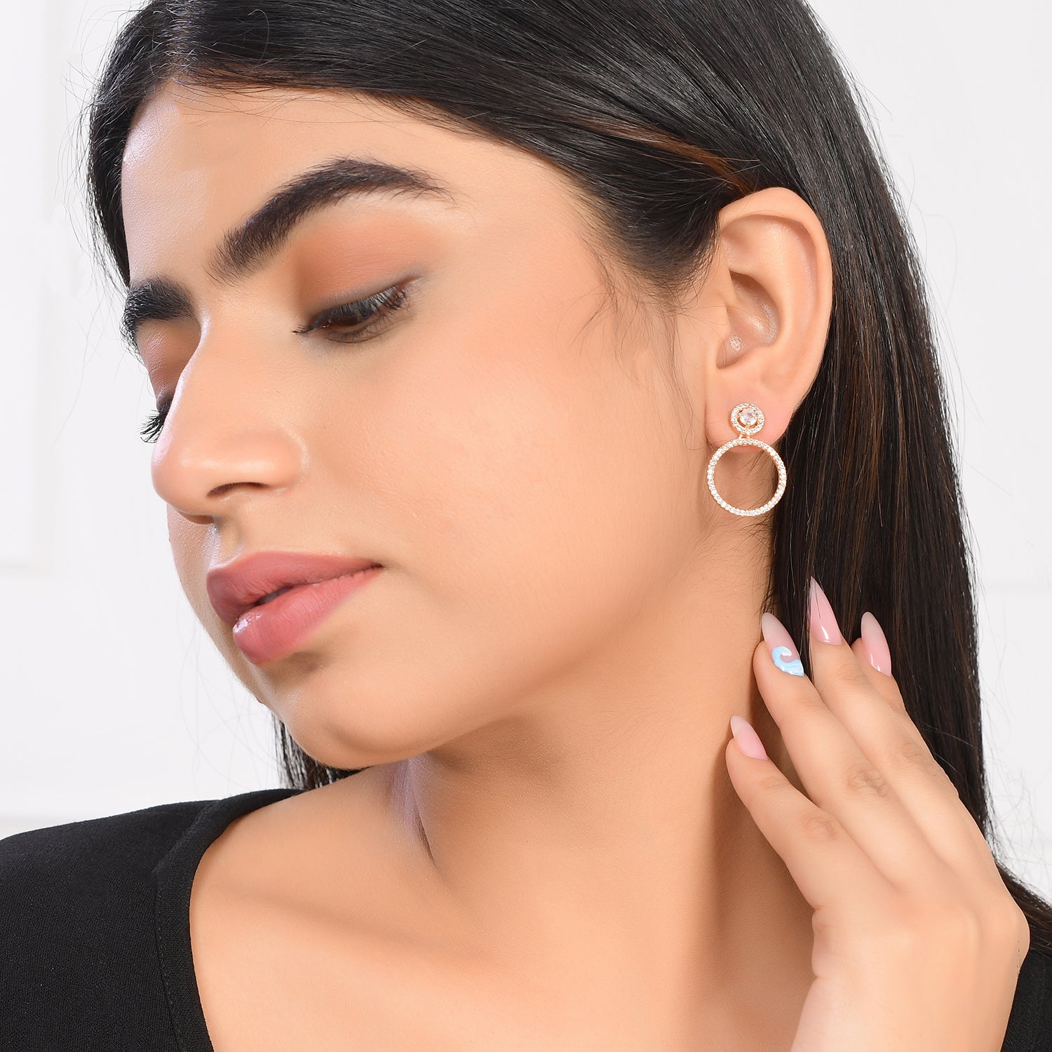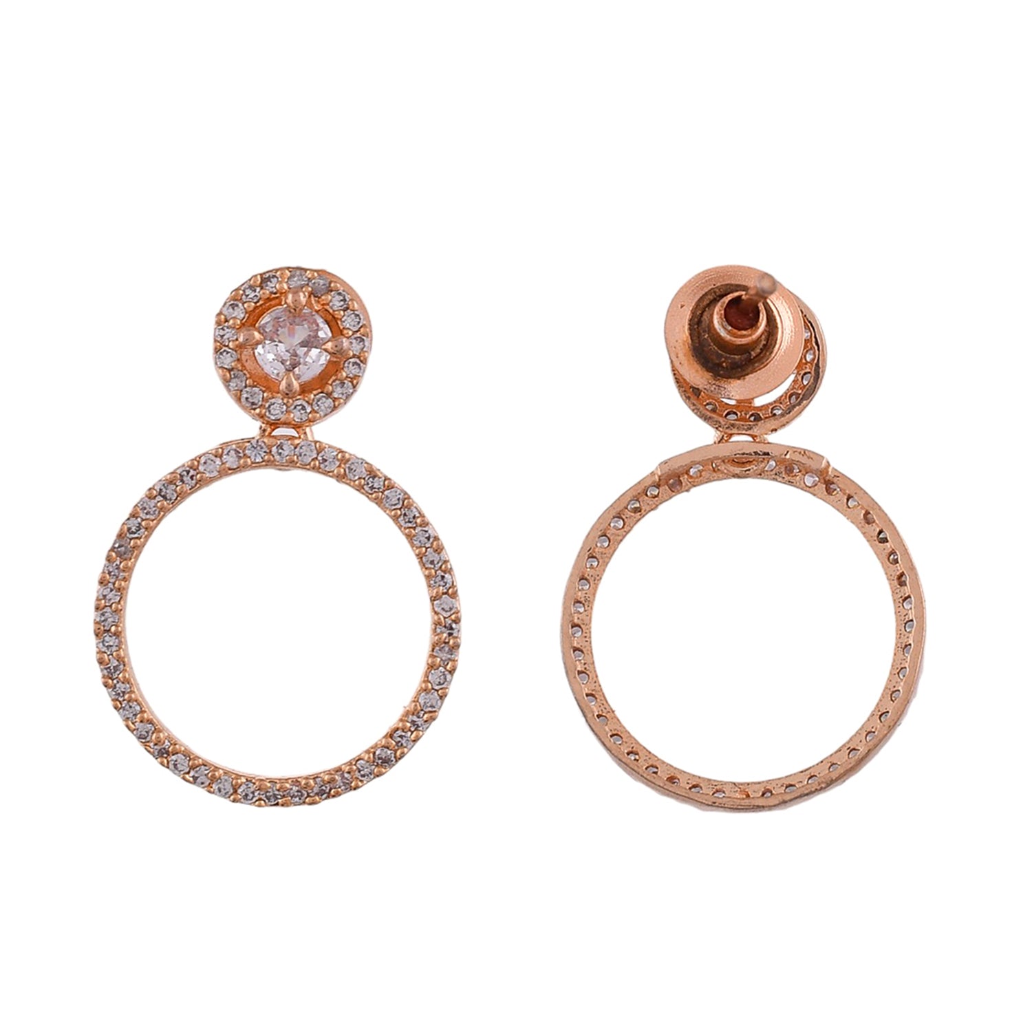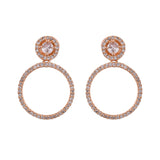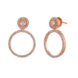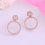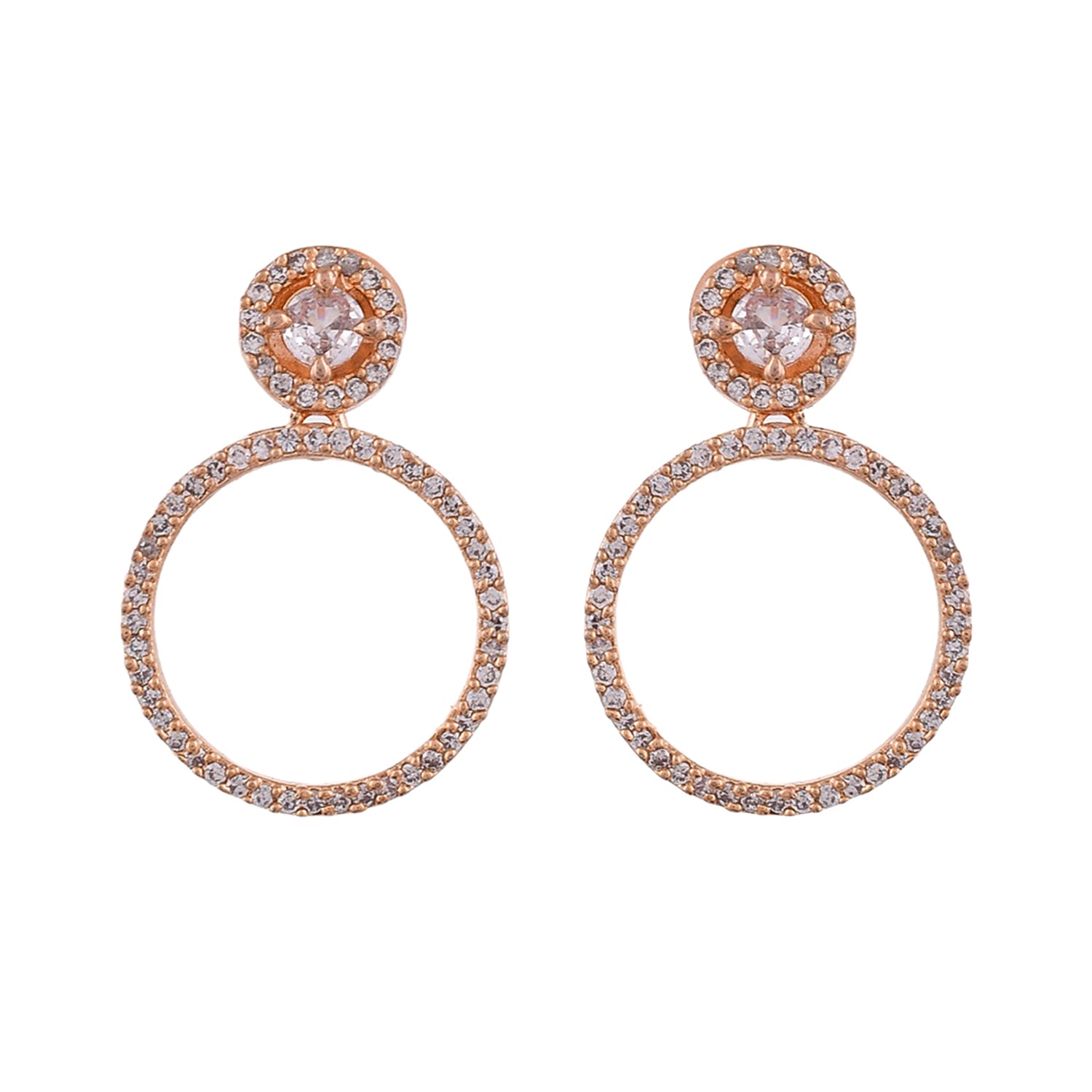 Layered circles drop earrings, made from brass and gold plated. Embellished with round cut CZ gems. Good for formal wear.