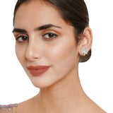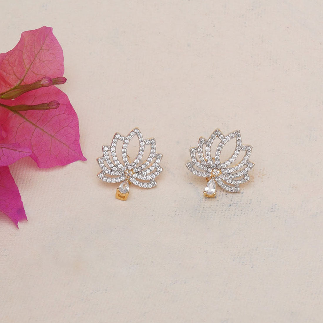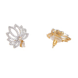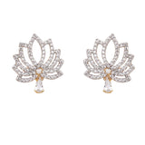 Sparkling Elegance Lotus Motif Silver Plated Faux Pearls and Zircons Earrings