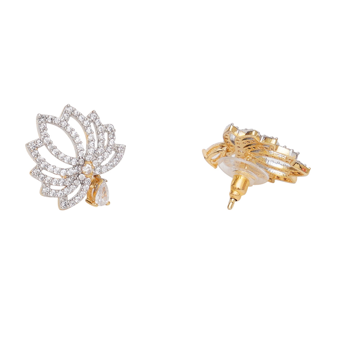 Fashioned from brass into lovely lotus motifs, these silver plated earrings have been embellished with faux pearls and zirconia gemstones. Lightweight and comfortable, the earrings will pair well with looks of all kinds.