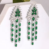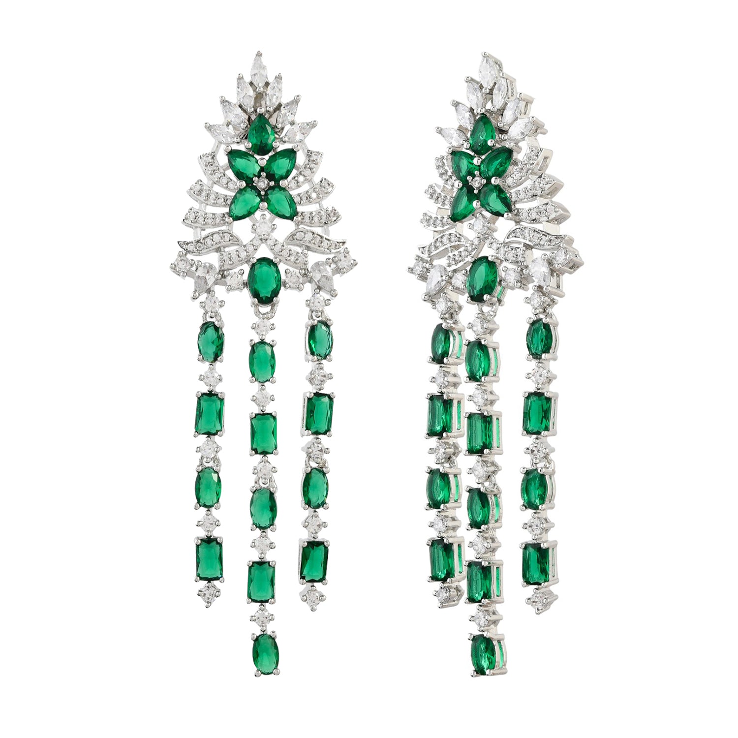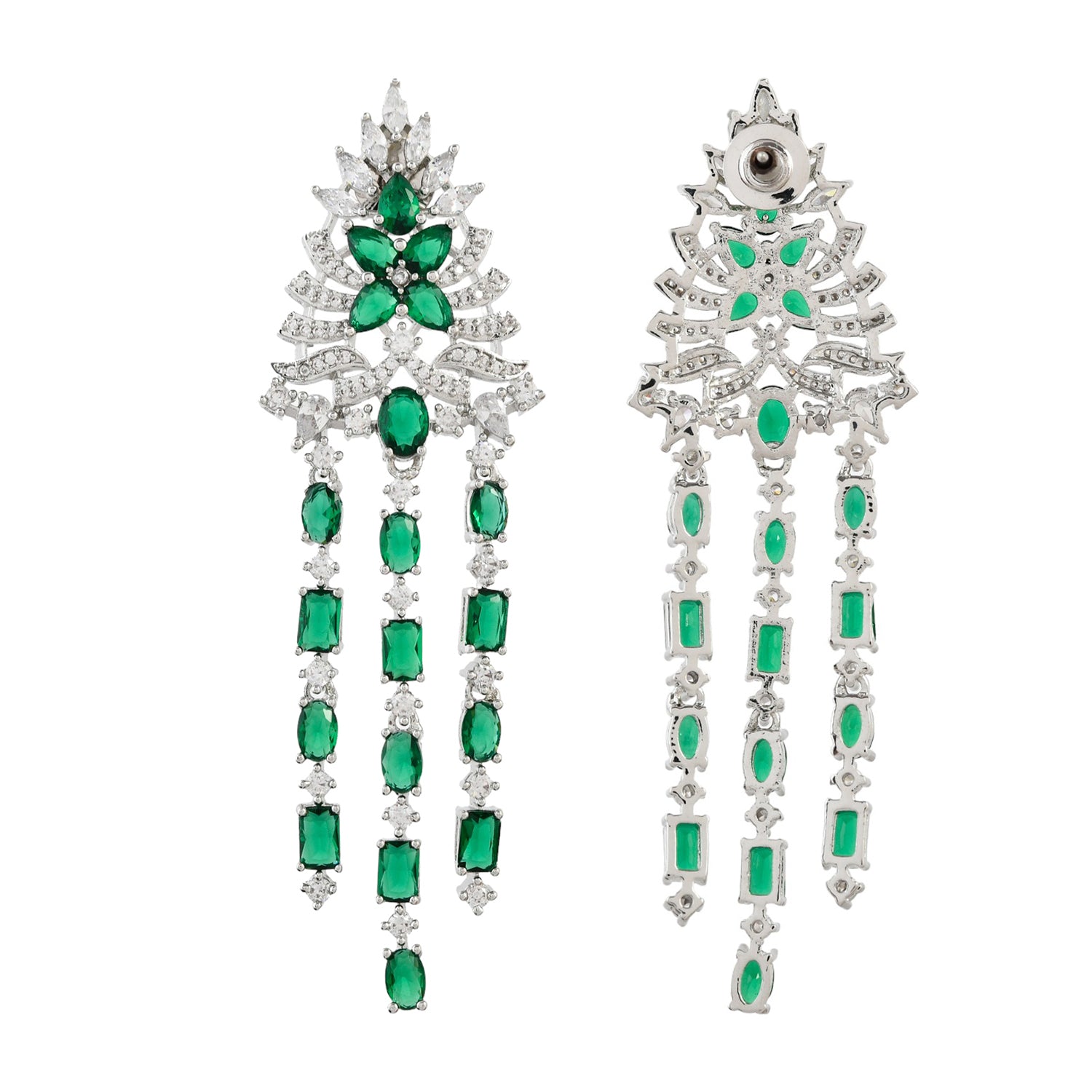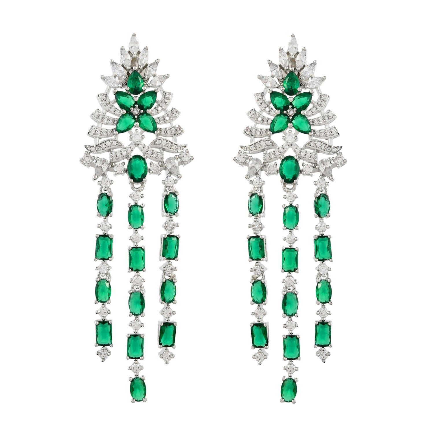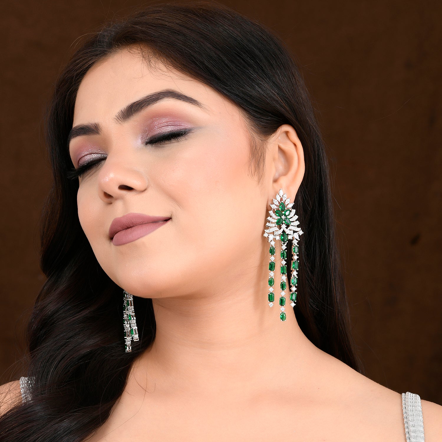 Sparkling Elegance Luxurious Emerald American Diamond Long Earrings