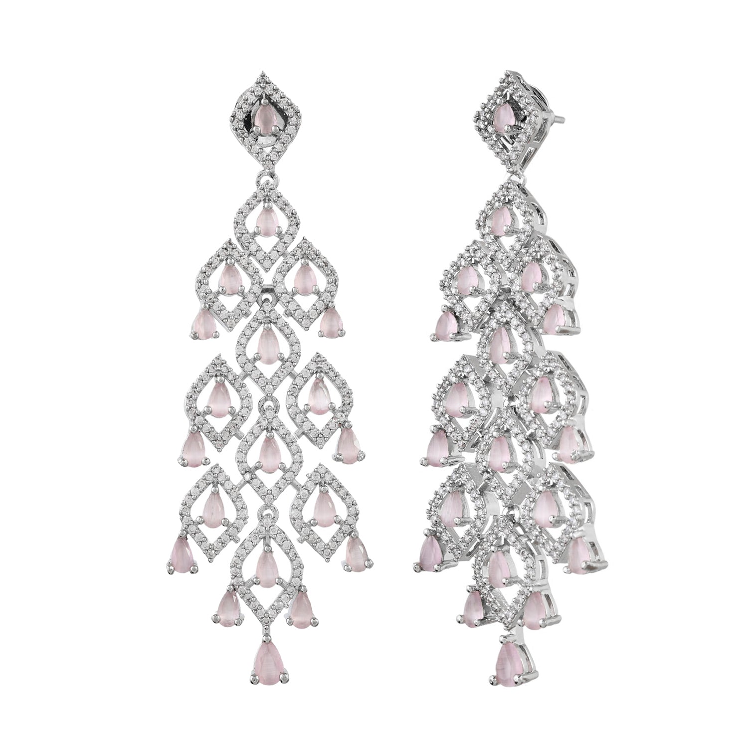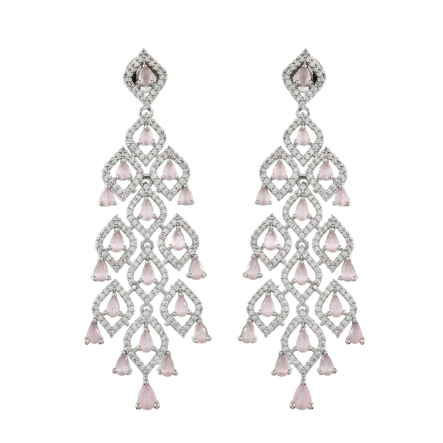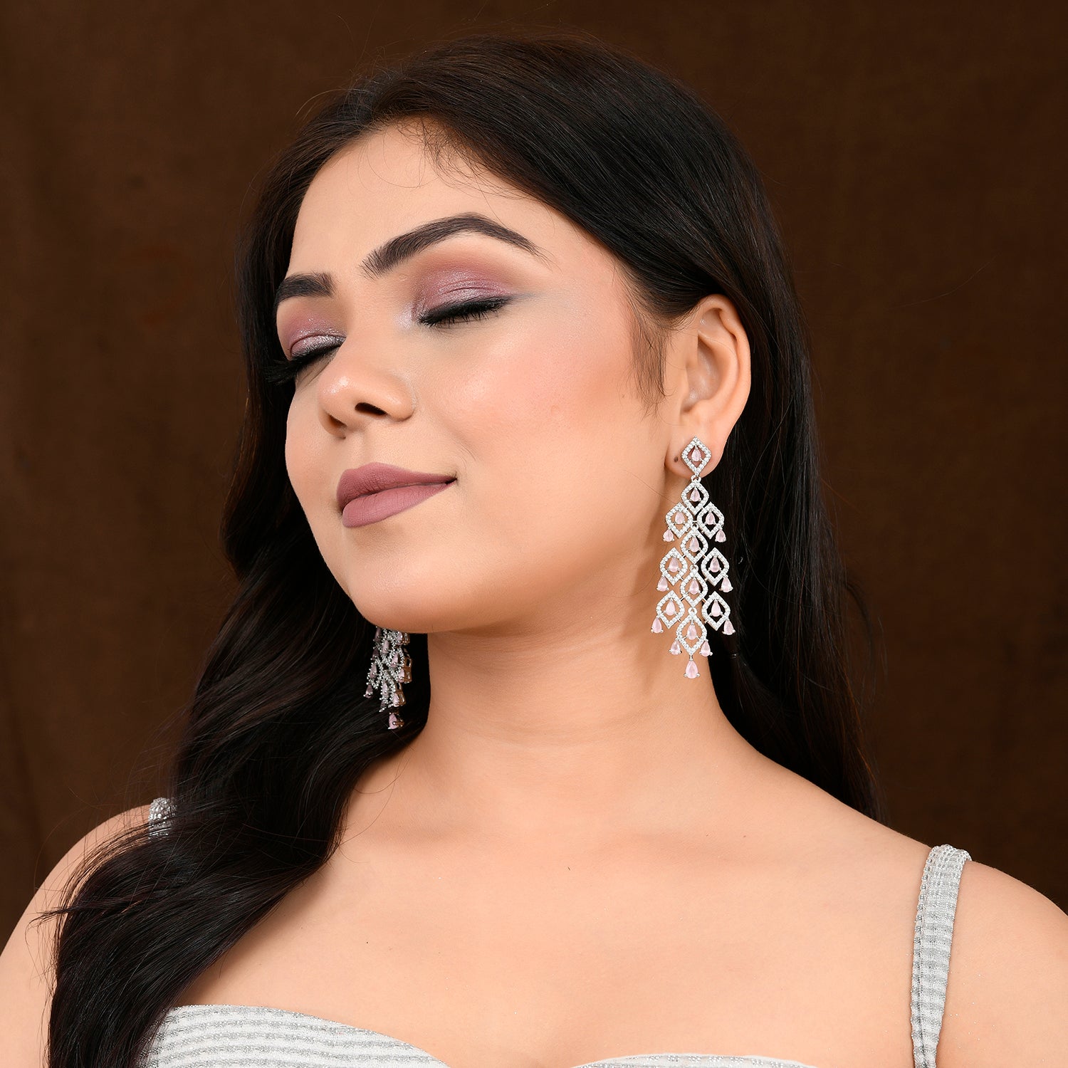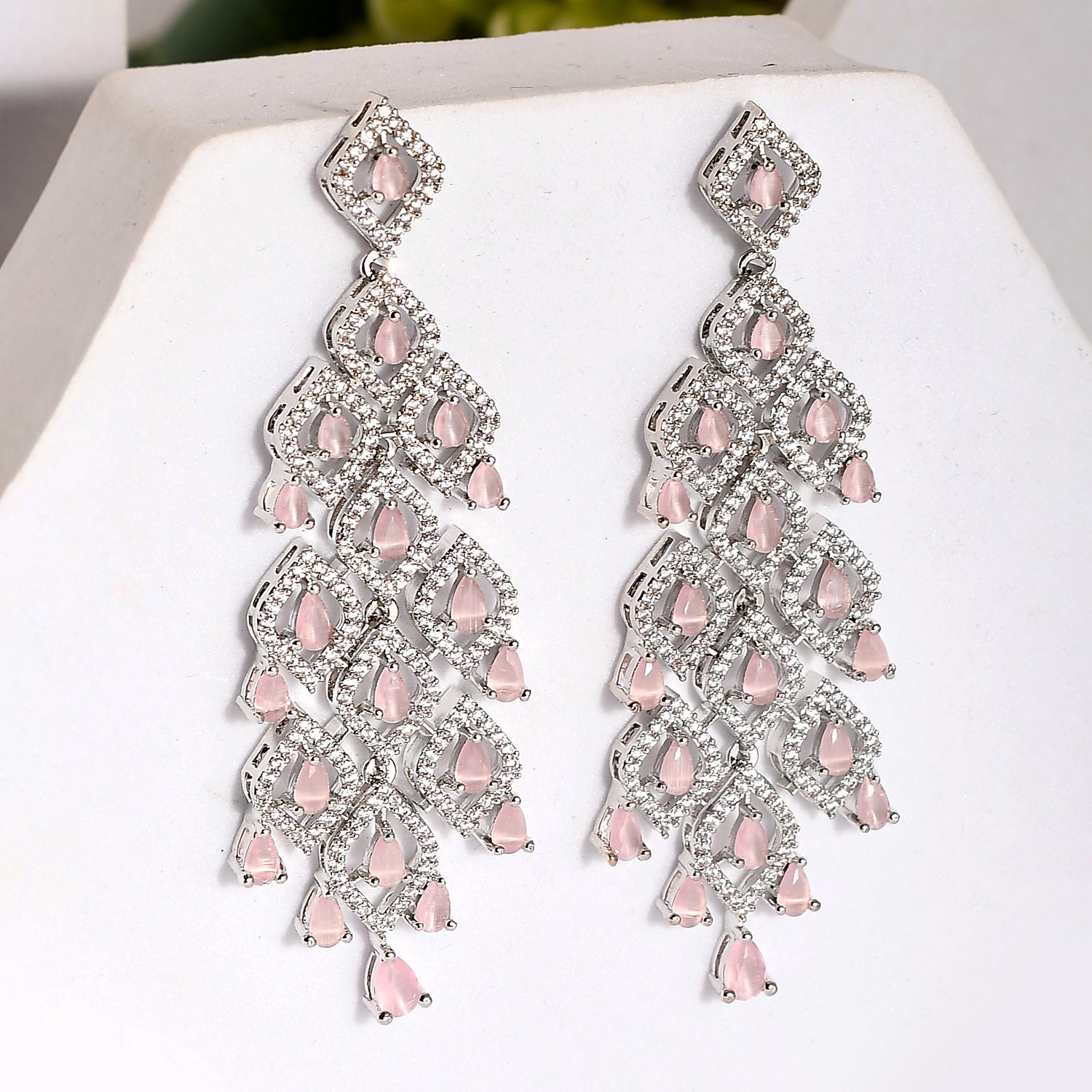 Sparkling Elegance Luxurious Soft Pink American Diamond Dangler Earrings