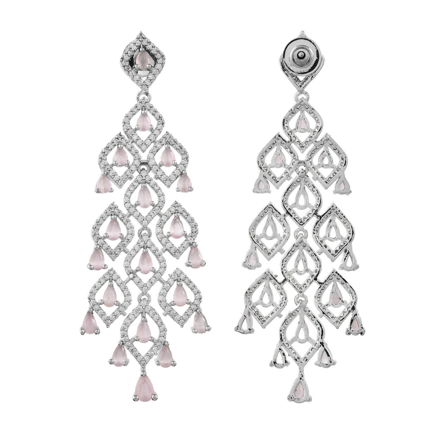 Crafted from high-quality brass and plated with luxurious white rhodium, these dangler earrings for women are a true masterpiece. The intricate design features a dazzling array of American diamonds that shimmer with every movement, making them perfect party wear dangler earrings for women. Delicate pink stones add a touch of soft color, enhancing the overall allure of these long earrings for women. Whether you’re looking for a gift for your wife, a gift for your sister, a gift for Rakhi, or simply a gift for yourself, these Voylla earrings for women are an exquisite choice. Their timeless beauty and sophisticated design make them a versatile addition to any jewelry collection. Embrace the elegance and charm of these American diamond earrings and make a statement at any event.
